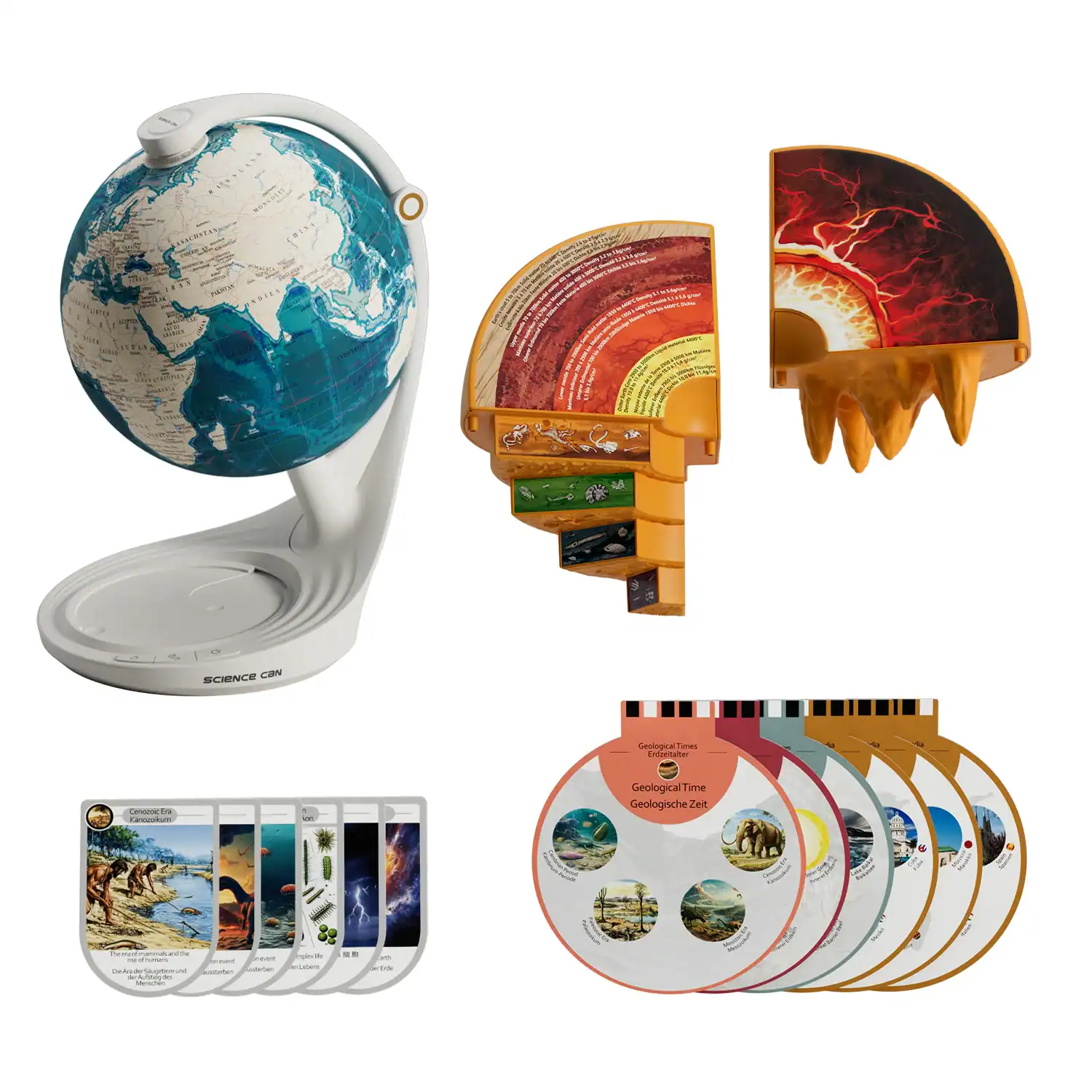 Science can THE EARTH – Interaktives 3D-Globus-Modell mit leuchtendem Kern & Quiz für Kinder