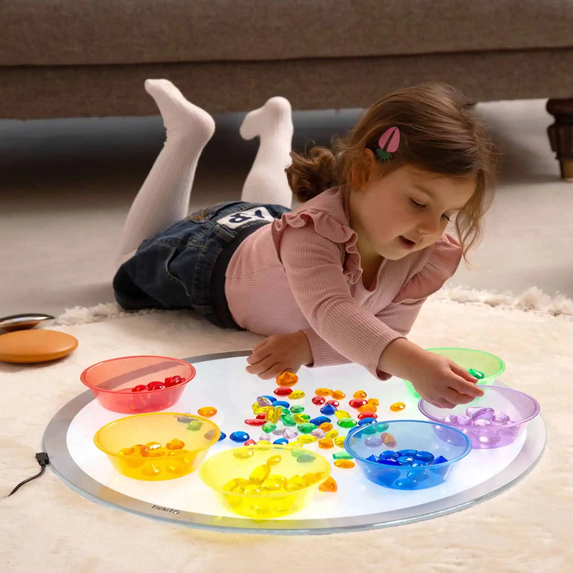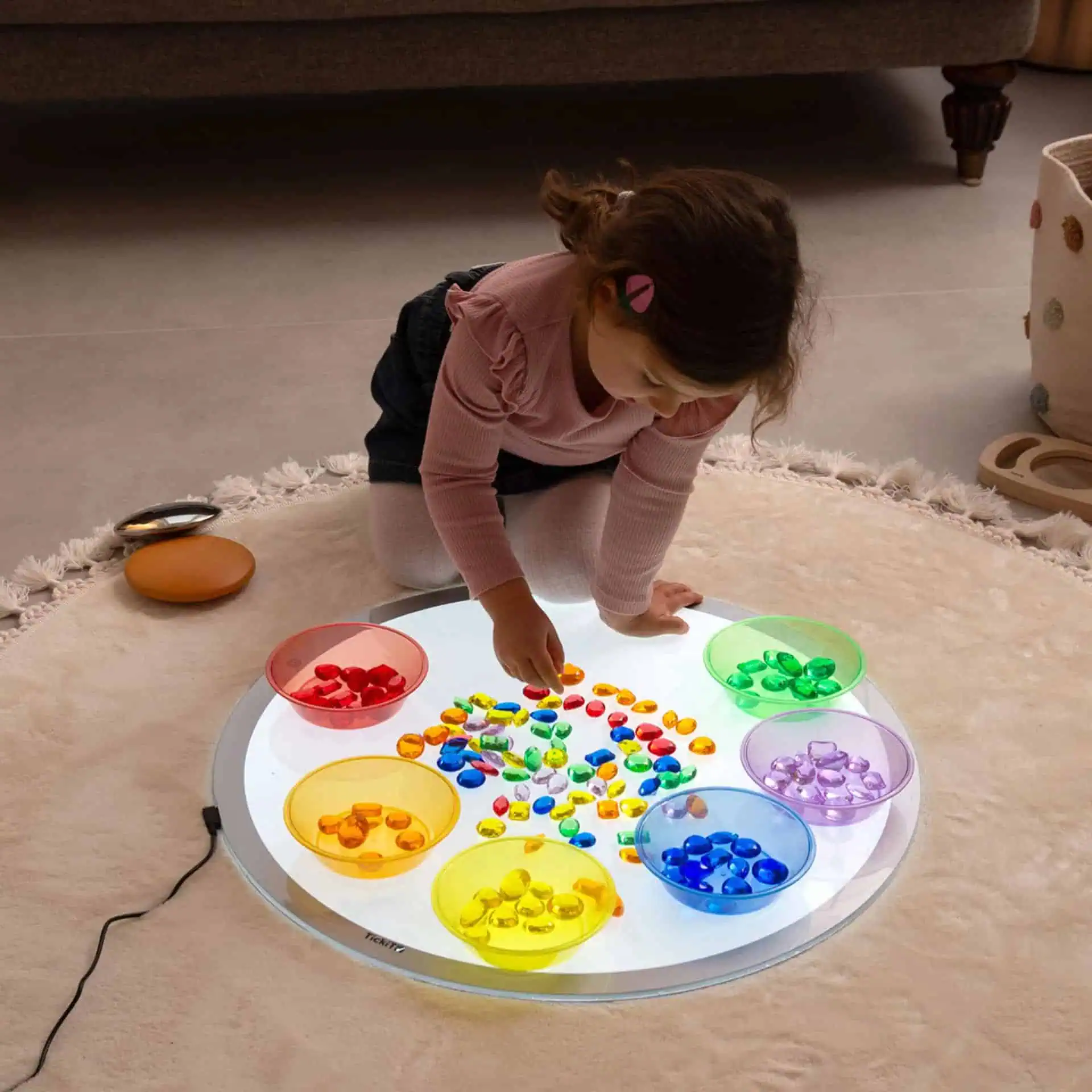 Weil Kinder selbstwirksam lernen: ausprobieren, beobachten, vergleichen – bis der Aha-Moment kommt. Die Materialien verbinden Kreativität und Struktur: Sie eignen sich zum freien Spiel, lassen sich aber auch gezielt als Lern-Impulse einsetzen (z. B. Farben mischen auf dem Leuchtpanel, Muster legen, Mengen erfassen).