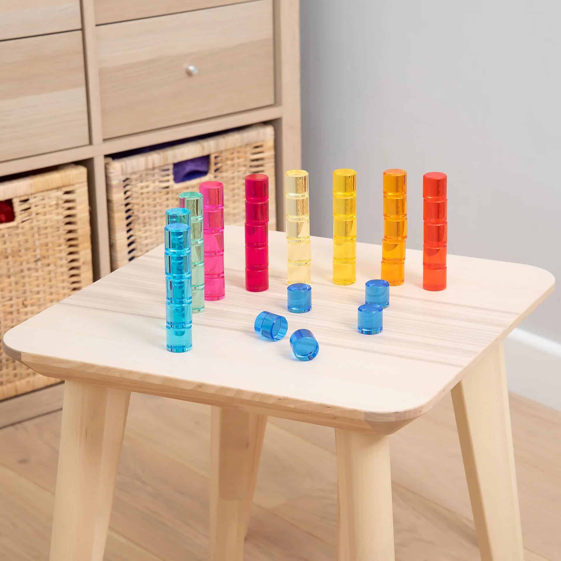 Weil Kinder selbstwirksam lernen: ausprobieren, beobachten, vergleichen – bis der Aha-Moment kommt. Die Materialien verbinden Kreativität und Struktur: Sie eignen sich zum freien Spiel, lassen sich aber auch gezielt als Lern-Impulse einsetzen (z. B. Farben mischen auf dem Leuchtpanel, Muster legen, Mengen erfassen).