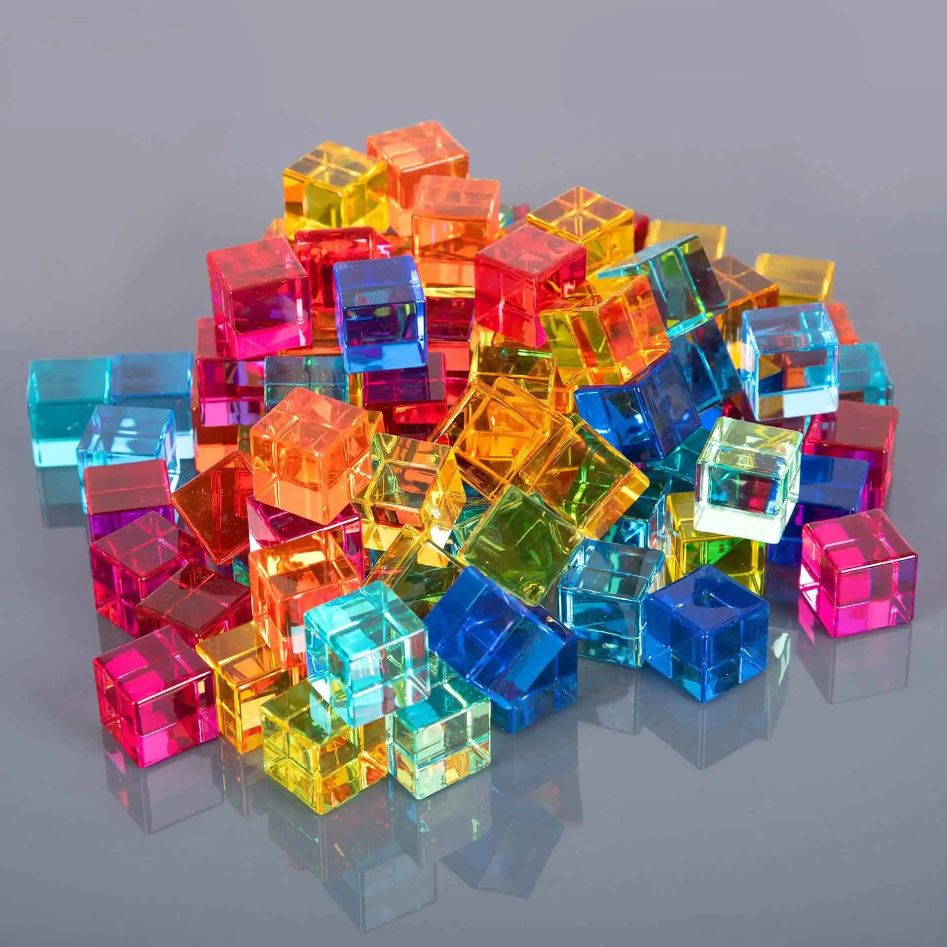 Inhalt: 100 Acryl-Edelsteincubes in 10 verschiedenen Farben