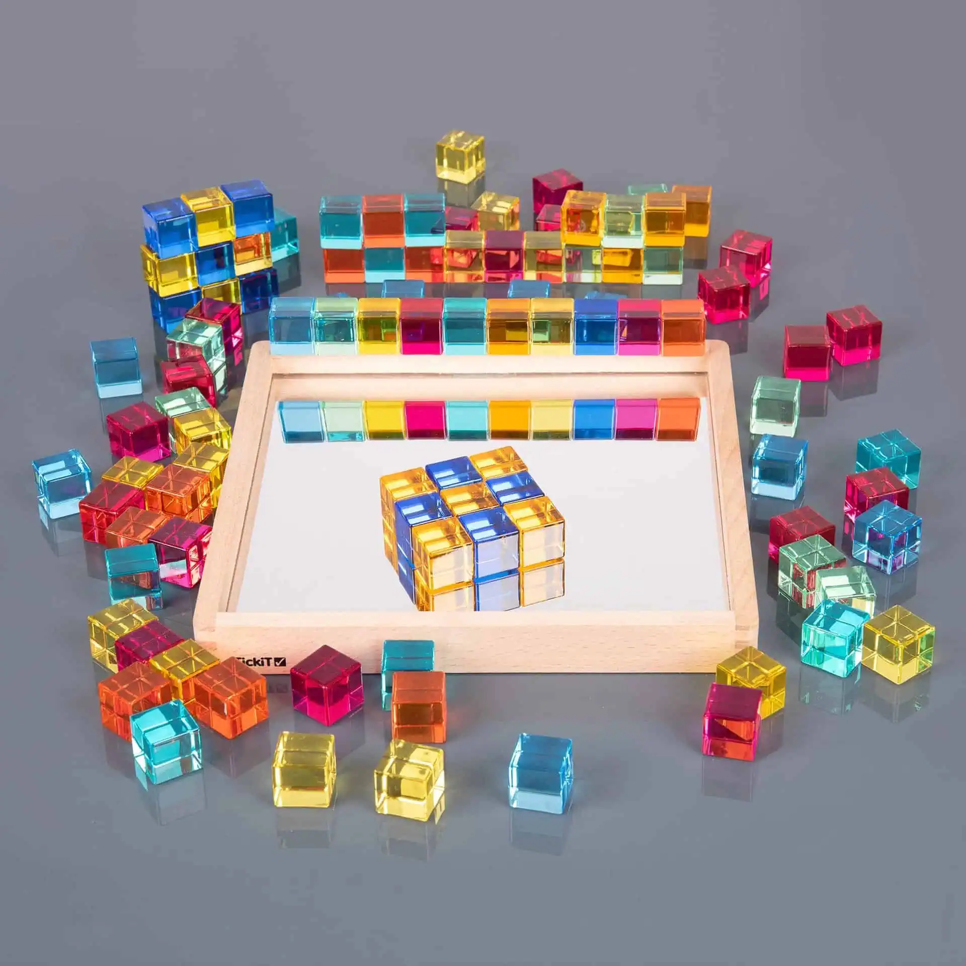 TickiT® Edelsteinwürfel mit Spiegel-Tablett – 100-teiliges Set