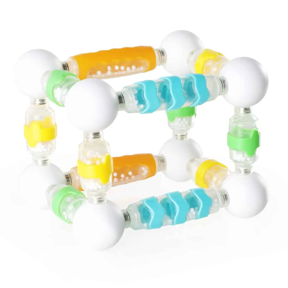Magnetisch bauen & hören: Rasselstäbe mit klaren Fenstern + Metall-Kugelverbinder – Soft-Touch, abwischbar; fördert Sensorik, Balance & STEM. 20/30 Teile. Ab 18+ Mon.