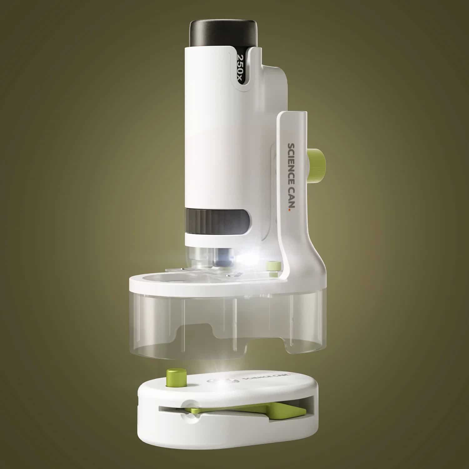 Entdecken Sie mit dem Science Can Mikroskop 250 Entdeckerset die Welt der Mikrobiologie. Tragbar, bis zu 250-fache Vergrößerung, inklusive Laborzubehör und Smartphone-Halterung.