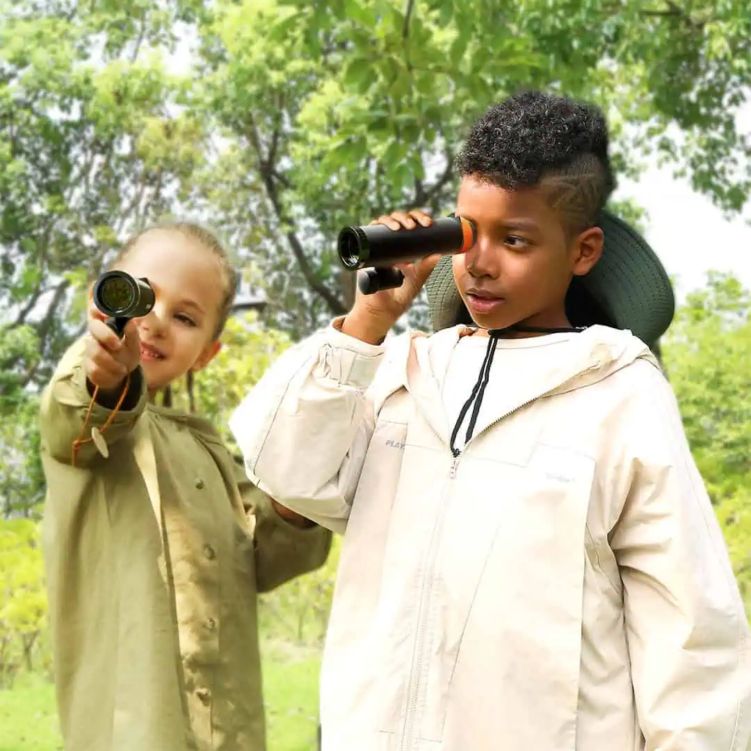 3-in-1 Naturentdecker-Set: Monokulare, Fernglas & Fernrohr – mit 16x/4x Zoom, Stativ & Smartphone-Halterung. Perfekt für kleine Forscher:innen ab 6 Jahren.