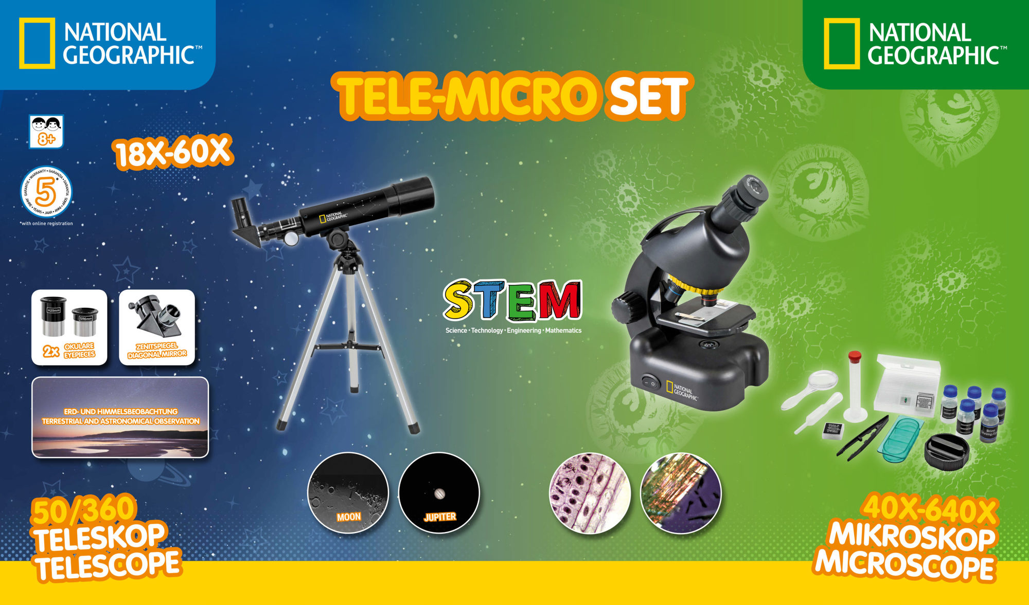 Dieses NATIONAL GEOGRAPHIC Set beinhaltet zwei Artikel, die dir den direkten Einstieg in die Astronomie und Mikroskopie ermöglichen!