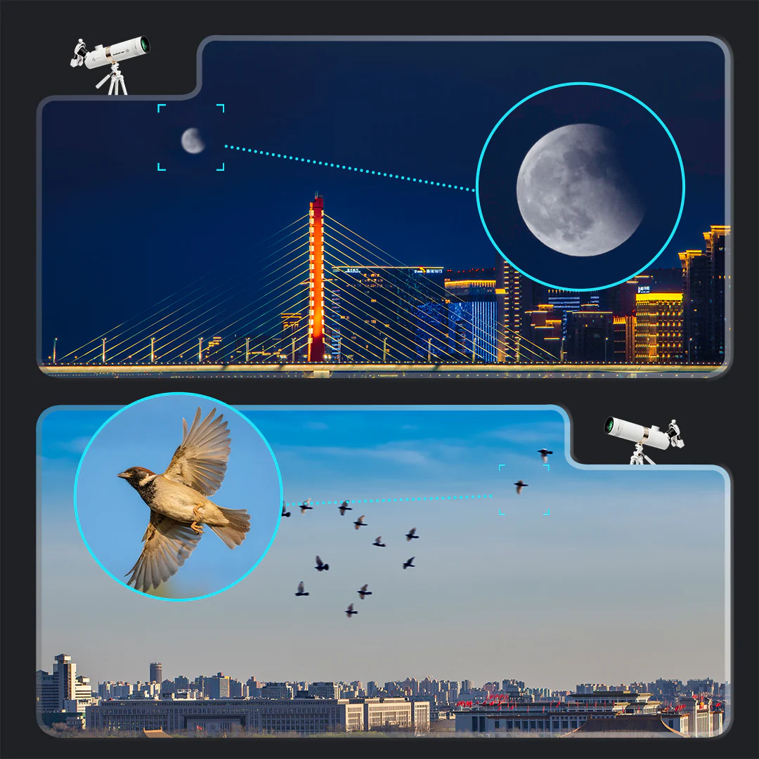 Das Telescope Horizon Star kombiniert stabile Konstruktion mit einfacher Bedienung und kindgerechtem Handling. Kinder richten das Fernrohr aus, fokussieren ruhig und beobachten Kontraste am Himmel.