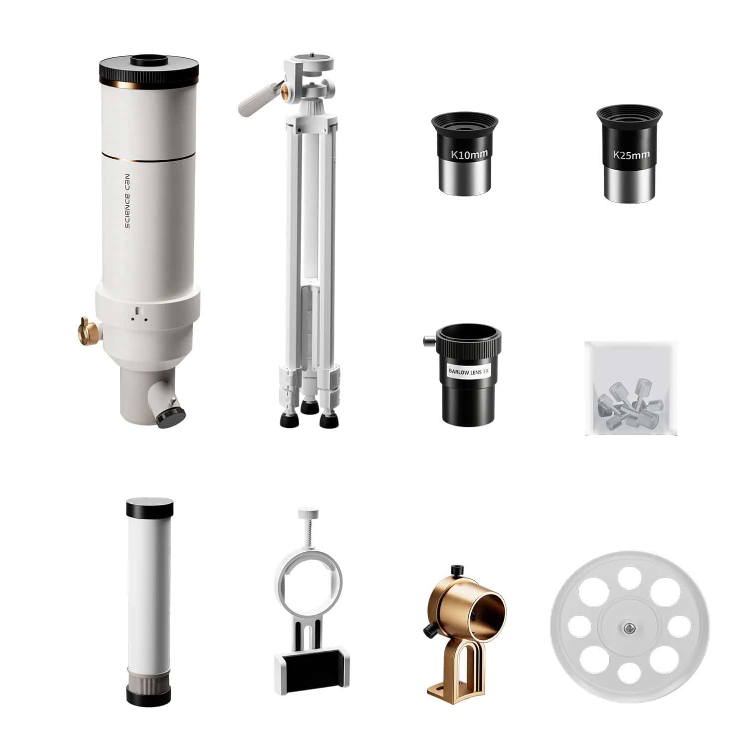 Das Science Can Teleskop Astro Star eröffnet Kindern ab 8 Jahren die faszinierende Welt der Astronomie. Mit einer beeindruckenden bis zu 120-fachen Vergrößerung können junge Entdecker Mondkrater, Sterne und sogar weit entfernte terrestrische Objekte wie Vögel oder Berge detailliert beobachten. Das Linsenteleskop wird mit zwei Okularen (16x und 40x) sowie einer 3-fachen Vergrößerungslinse geliefert, die vielfältige Kombinationen für unterschiedliche Beobachtungen ermöglichen. Das stabile Aluminium-Stativ sorgt für einen sicheren Stand, während die integrierte Smartphone-Halterung das Festhalten und Teilen der Entdeckungen erleichtert. Ein ideales Geschenk für angehende Astronomen.