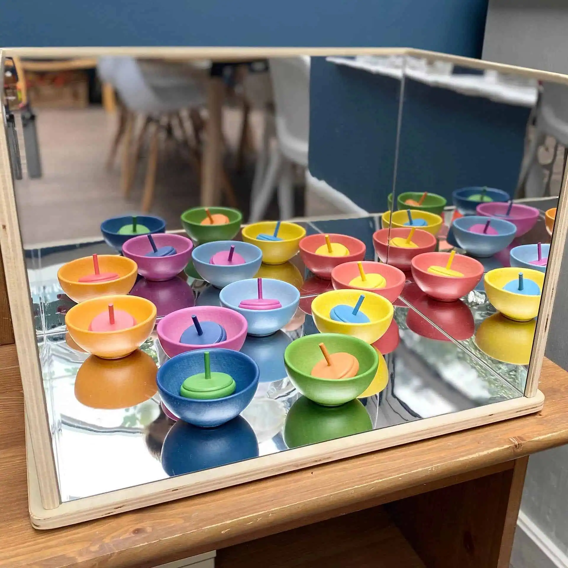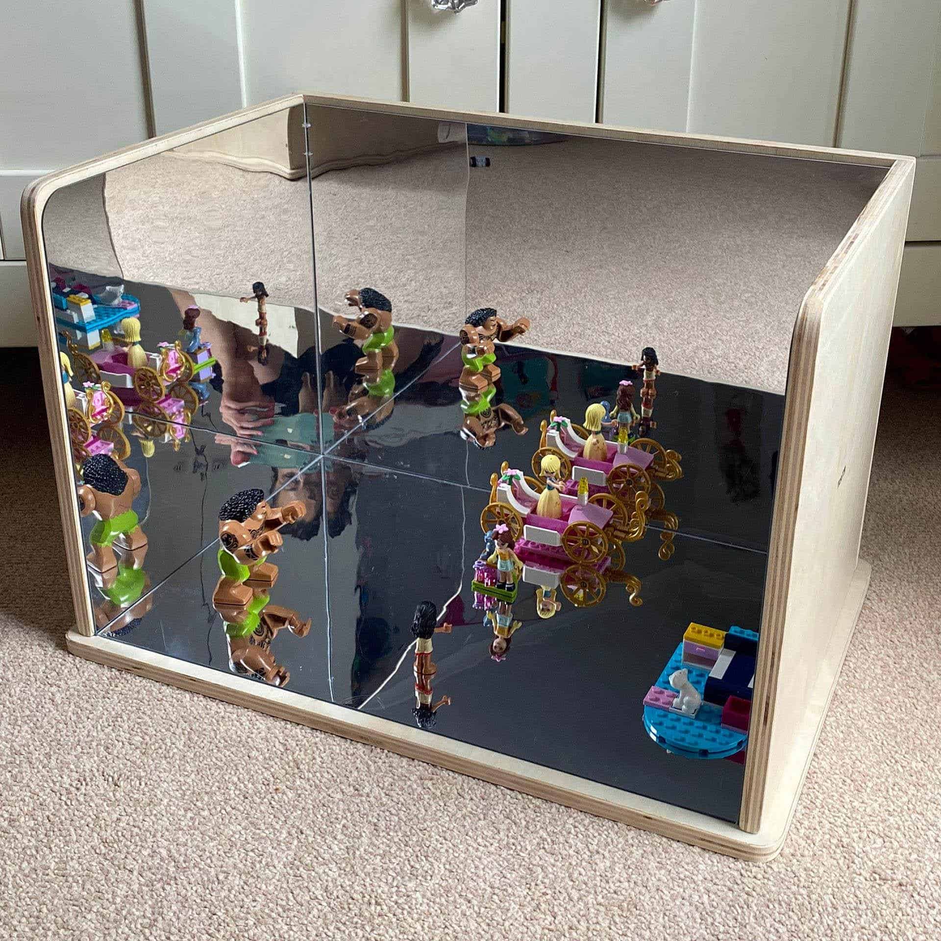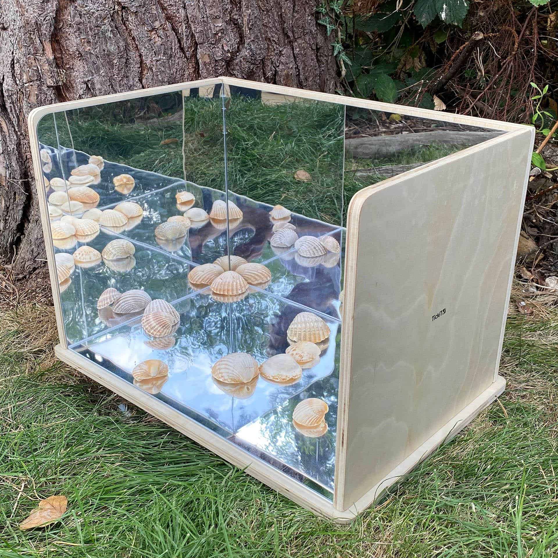 Der TickiT Holz-Erkundungsspiegel mit Acrylspiegeln ermöglicht Kindern, Reflexionen zu erforschen und kreative Spielwelten zu gestalten.