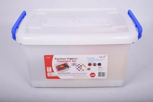 Bei dem Edx Education – Rainbow Pebbles Classroom Set handelt es sich um 252 bunte Kieselsteine in sechs verschiedenen Größen und Farben. Sie sind eine tolle Möglichkeit für Kinder, spielerisch die Gesetze der Physik kennenzulernen und gleichzeitig etwas Schönes zu erschaffen. Die Steine bestehen aus unzerstörbarem Plastik, das für Kinder ab 3 Jahren geeignet ist. Sie sind in einer schicken Box verpackt, die Lagerung und Transport ganz einfach macht.
