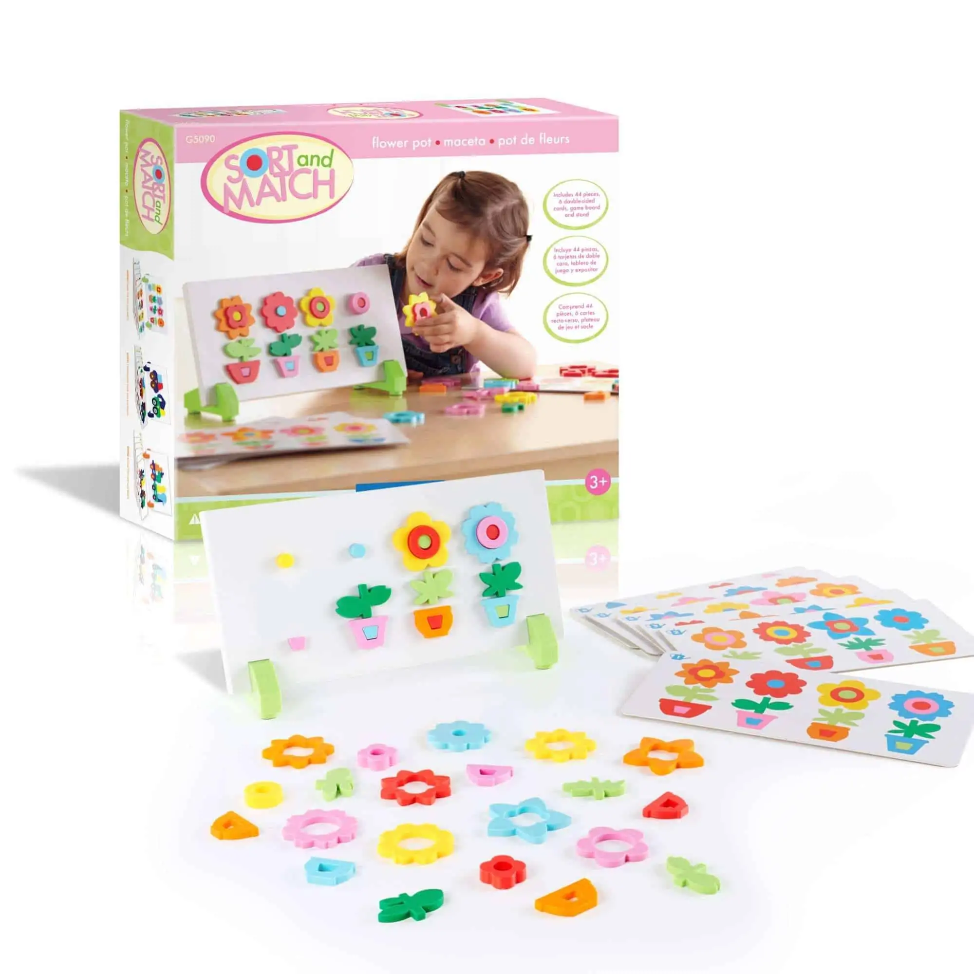 Flower Pot Sort & Match macht Mustererkennung und Sequenzieren greifbar: Kinder legen die magnetischen Blumenteile nach Farbe/Form und Vorlage auf das selbststehende Board. Die eingebetteten Magnete führen die Teile sicher in Position – das reduziert Frust und fördert präzises Arbeiten. Die 12 Aufgaben (6 doppelseitige Karten) reichen von einfachen Farbreihen bis zu komplexeren Mustern. Nach dem Spielen verschwindet alles ordentlich im kompakten Kasten – ideal für Kita, Vorschule und Zuhause.