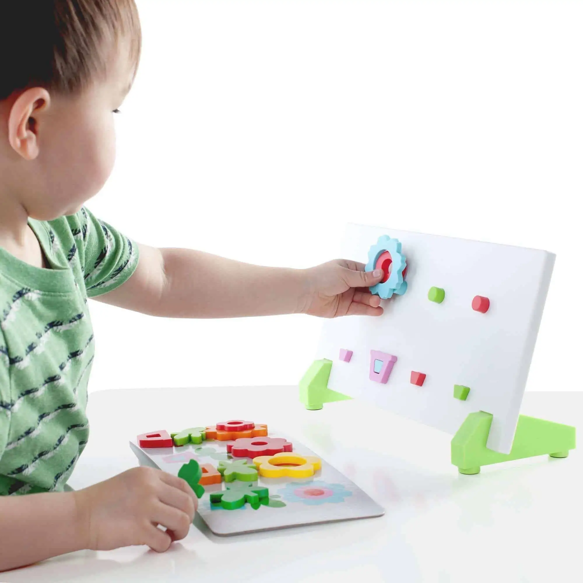 - Setumfang: 44 magnetische Teile, 6 doppelseitige Musterkarten (insgesamt 12 Vorlagen), Board mit Standfuß und Aufbewahrungsbox