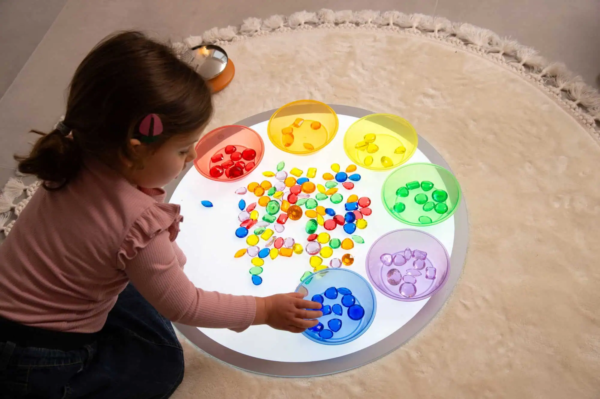 Weil Kinder selbstwirksam lernen: ausprobieren, beobachten, vergleichen – bis der Aha-Moment kommt. Die Materialien verbinden Kreativität und Struktur: Sie eignen sich zum freien Spiel, lassen sich aber auch gezielt als Lern-Impulse einsetzen (z. B. Farben mischen auf dem Leuchtpanel, Muster legen, Mengen erfassen).
