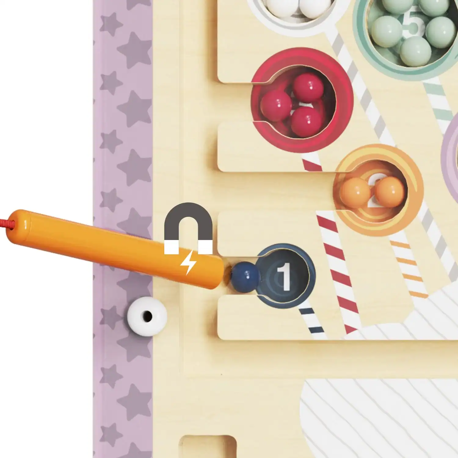 Magnetstift führen, Kugeln sortieren: robustes Magnetlabyrinth – trainiert Feinmotorik, Logik & Konzentration. ABS/Sperrholz, handlich. Für Kinder.