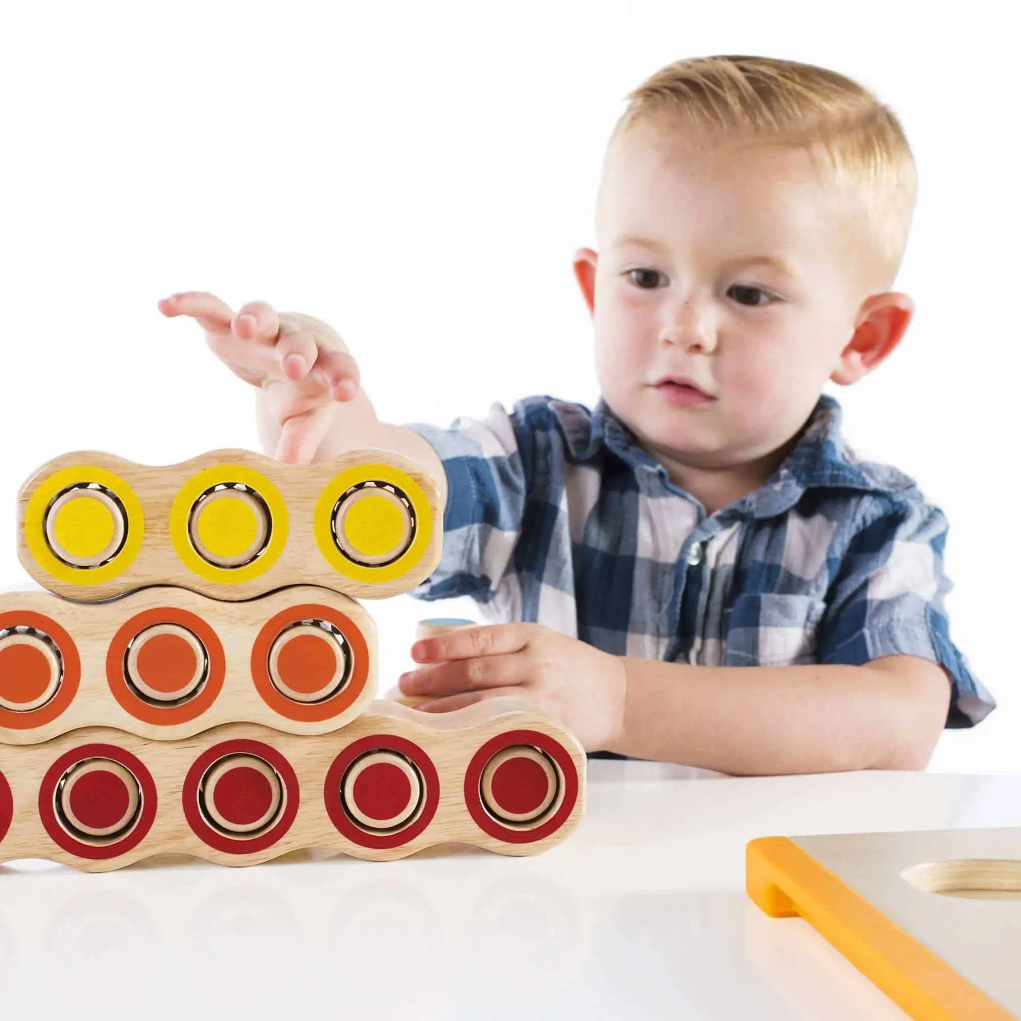 - Feinmotorik: Greifen, aufstecken, stabil stapeln