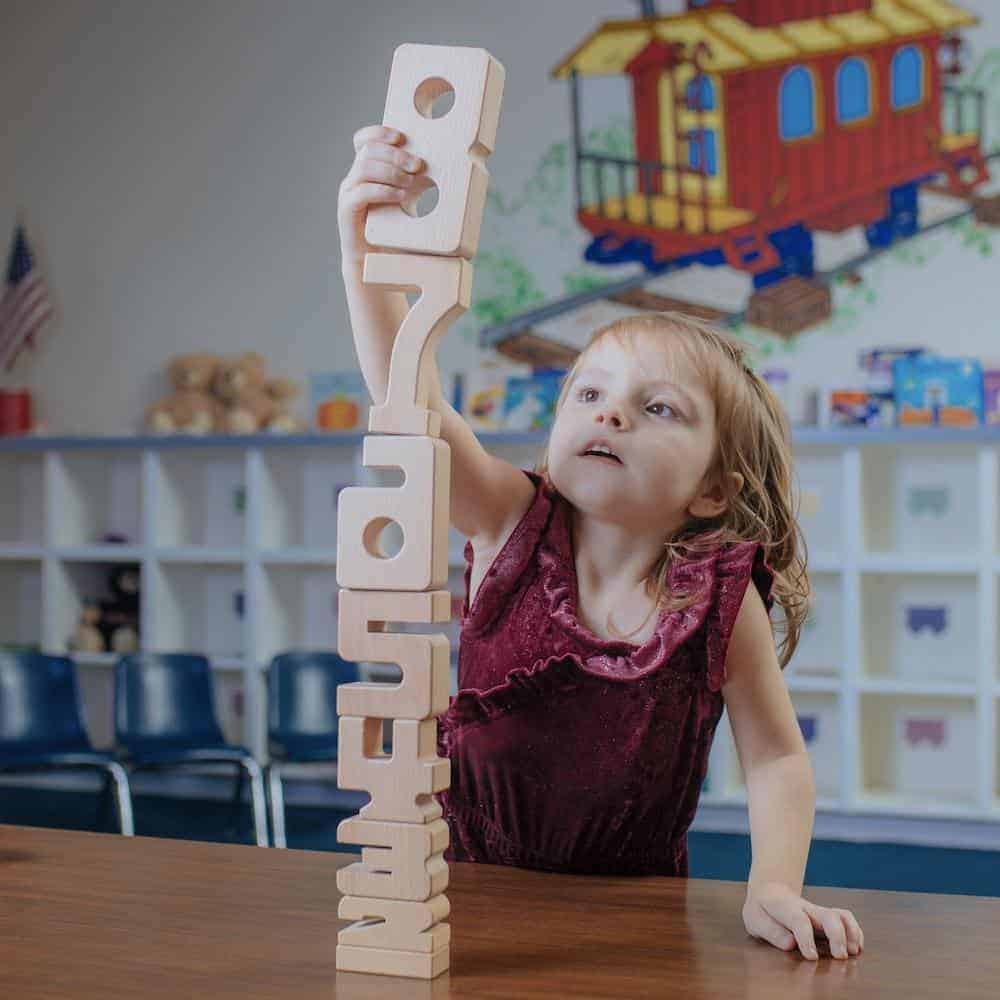 Beim Bauen und Vergleichen entstehen Zahlvorstellung, Mengenverständnis und Operieren am Material (z. B. 2+3=5 als gleich hohe Türme). Ganz nebenbei wachsen Feinmotorik, räumliches Denken und Problemlösen.