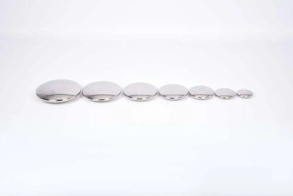 7 große Silberknöpfe aus Edelstahl. Leicht, aber robust und stabil. Zum Bauen von Wackeltürmen und mehr.