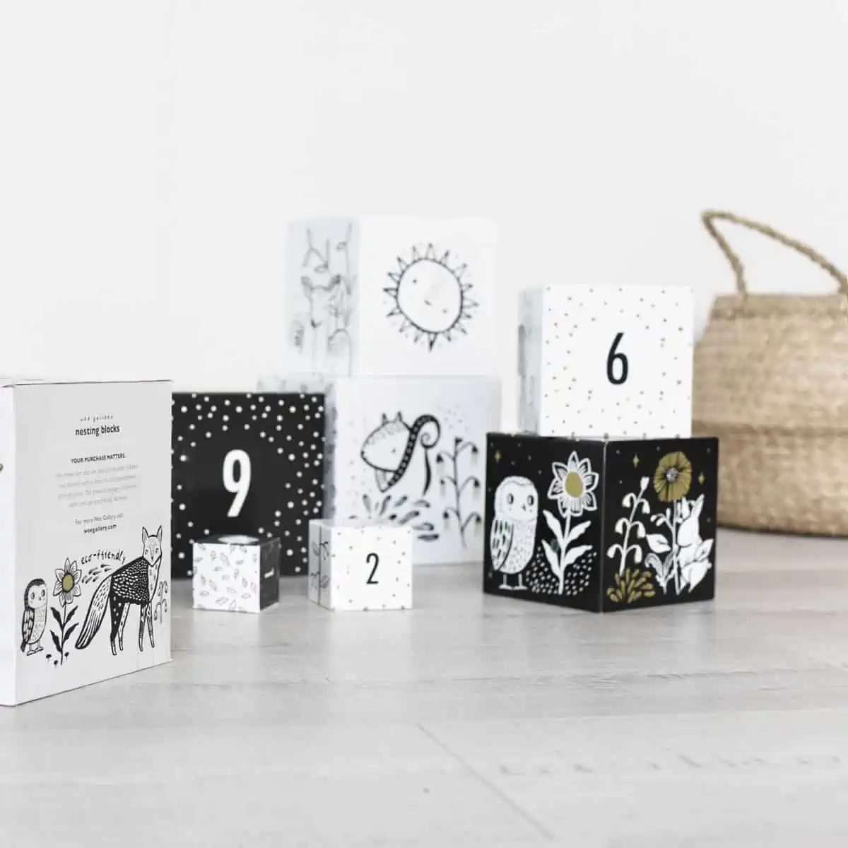 Wee Gallery verbindet ästhetisches Design mit frühkindlichen Lernimpulsen. Hoher Kontrast, klare Formen und natürliche Materialien laden Babys und Kleinkinder zum Entdecken ein – vom ersten Fixieren über Greifen bis zu Sprache & Geschichten. Die Produkte sind alltagstauglich, wertig und auf langjährige Nutzung ausgelegt – zuhause und in der Kita.
