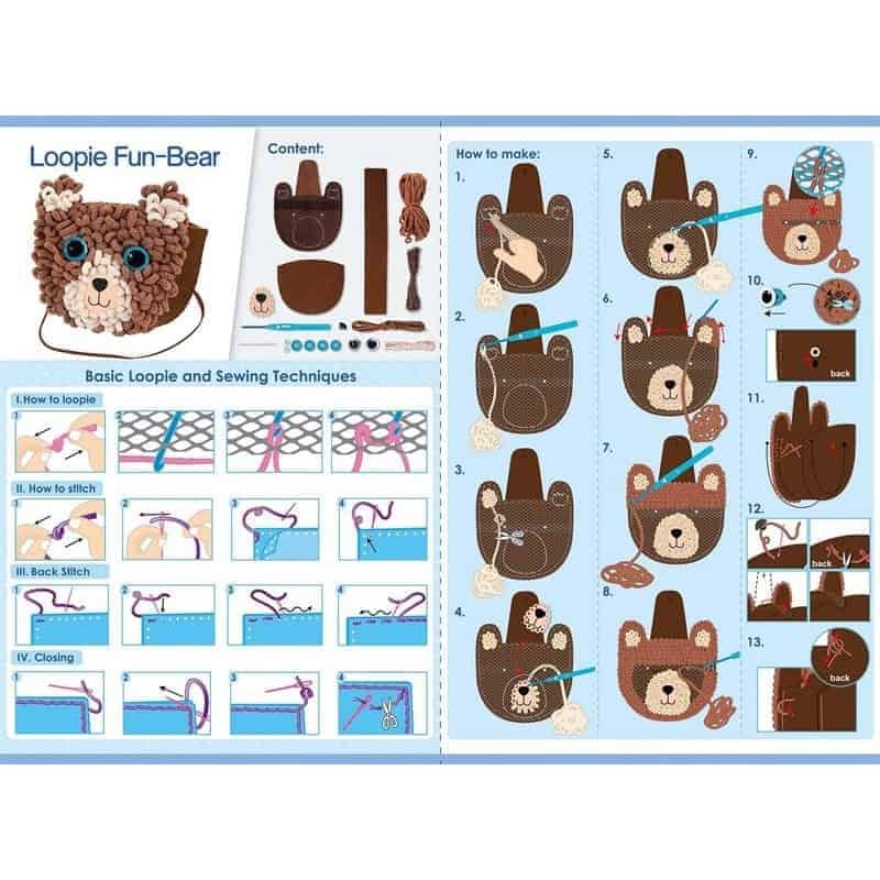 Avenir Loopie Bär ist ein Nähset, mit dem du im Handumdrehen eine schöne Plüschtasche in Bärenform selbst nähst.  Folge den Abbildungen der Anleitung Schritt für Schritt. Alles, was du zum Nähen brauchst, ist bereits im Set enthalten. Du findest Filzteile und Stoffe, Füllung, verschiedene Fäden, eine Nähnadel aus Kunststoff und eine Anleitung mit Abbildungen. Die fertige Tasche verfügt natürlich auch über einen Schulterriemen, damit du sie dir umhängen kannst. Jedes Set ist für Kinder ab 6 Jahren geeignet.