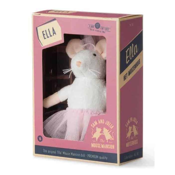 Die Das Mäusehaus Stofffigur Ella ist 12 cm hoch und besteht aus stabilem, robustem Material. Dadurch ist sie langlebig und bietet jahrelang Spaß. Gleichzeitig ist sie wunderbar weich und kuschelig. Ella ist einer der Charaktere aus dem beliebten niederländischen Kinderbuch „Het Muizenhuis“. Hier wohnen die ganzen Mäusecharaktere gemeinsam in einem Haus und erleben viele Abenteuer zusammen. Jetzt kannst du dir die freundlichen Mäuse aus dem Mäusehaus als Plüschfiguren nach Hause holen. Entdecke und sammle sie alle: Julia, Sam, Ella und den Opa Zeeman. Alle Het Muizenhuis Figuren bestehen aus Baumwolle und Polyester, sind CE-zertifiziert und für alle Altersgruppen geeignet.