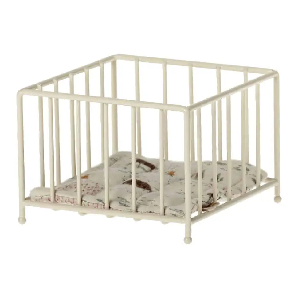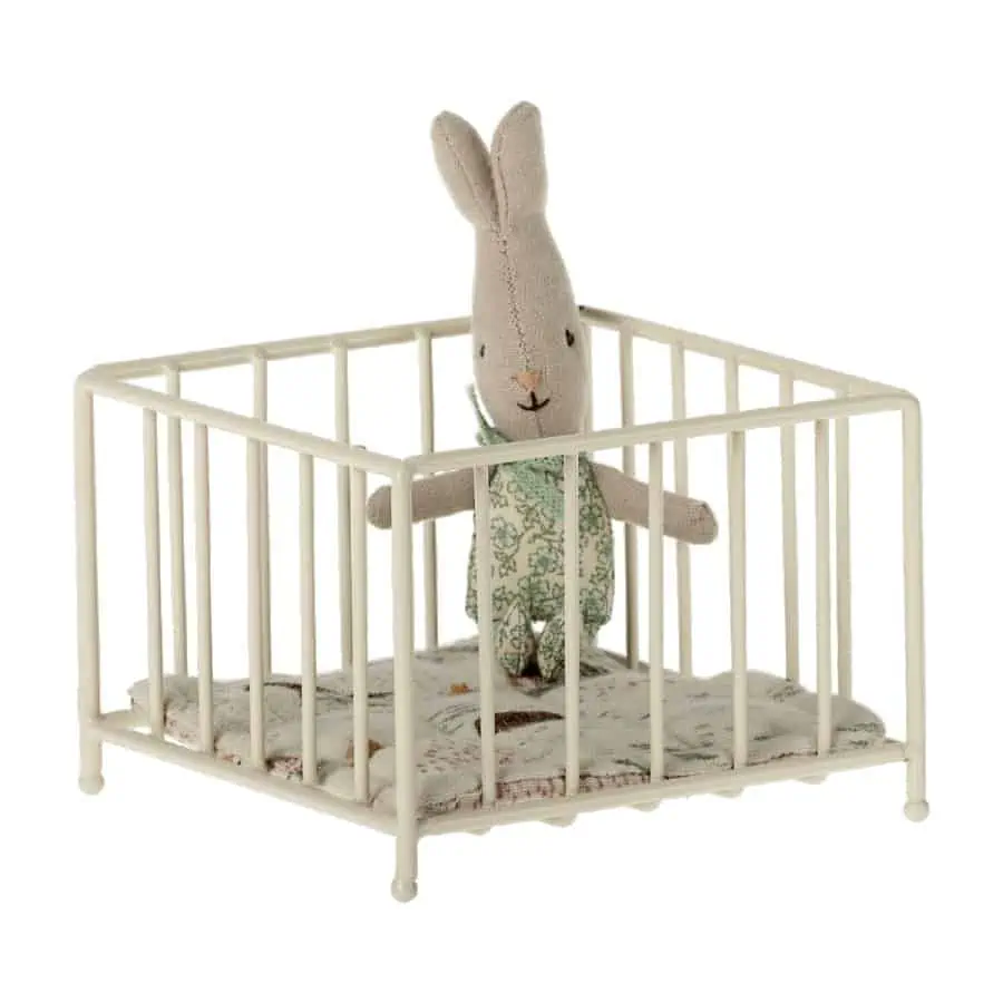 Lasse deine Lieblingspuppen in diesem weich gepolsterten Laufstall schlafen und spielen. Passend für alle Maileg-Freunde bis Größe MY (ca. 11 cm Höhe), zum Beispiel diese Stoffhasen.