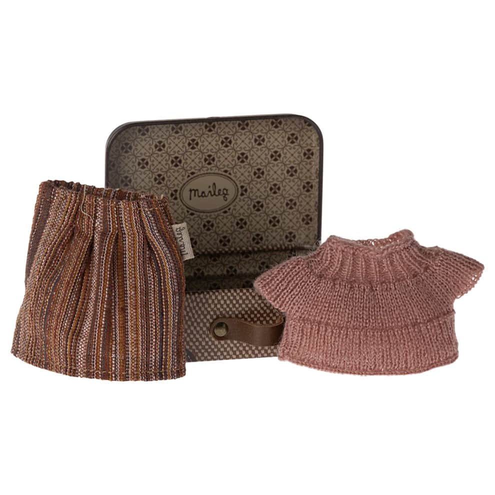 Maileg Strickbluse und Rock im Koffer, Oma Maus