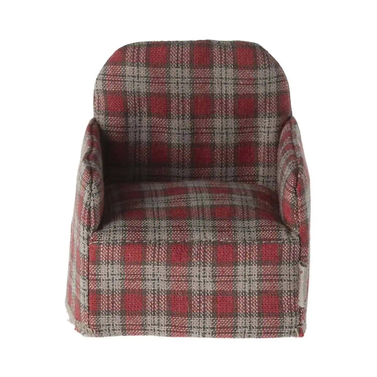 Dieser rot karierte Maileg Stuhl für Mäuse ist perfekt für das Lebkuchenhaus. Einfach zu montieren, aus Leinen/Baumwolle gefertigt und ideal für kleine Maileg-Freunde.