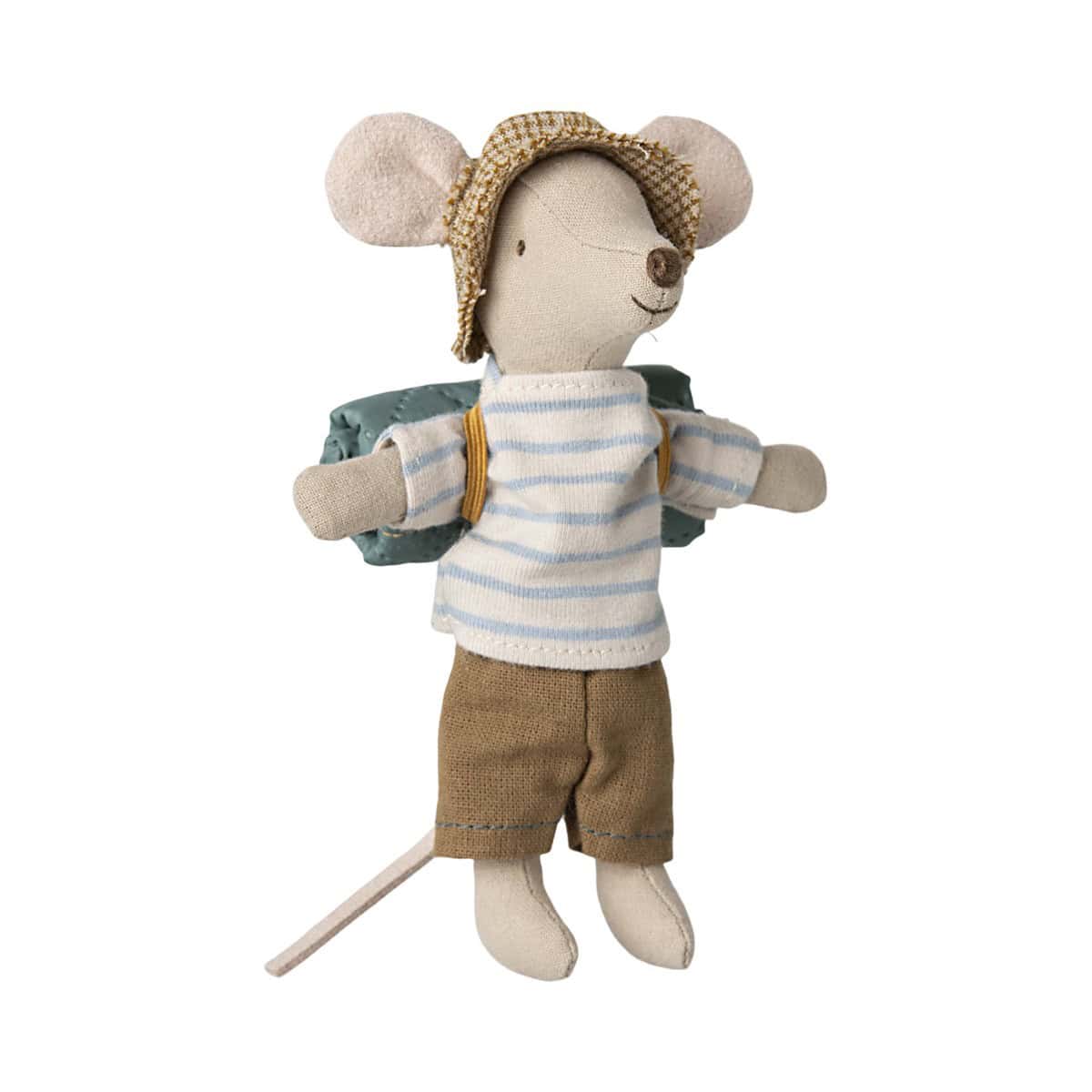 Abenteuerlustig & süß – die Maileg Wandermaus Großer Bruder im Streifenlook ist bereit für jede Wanderung. Mit Magnet-Händen, Schlafsack & waschbar. Ideal für Kinder ab 3 Jahren.