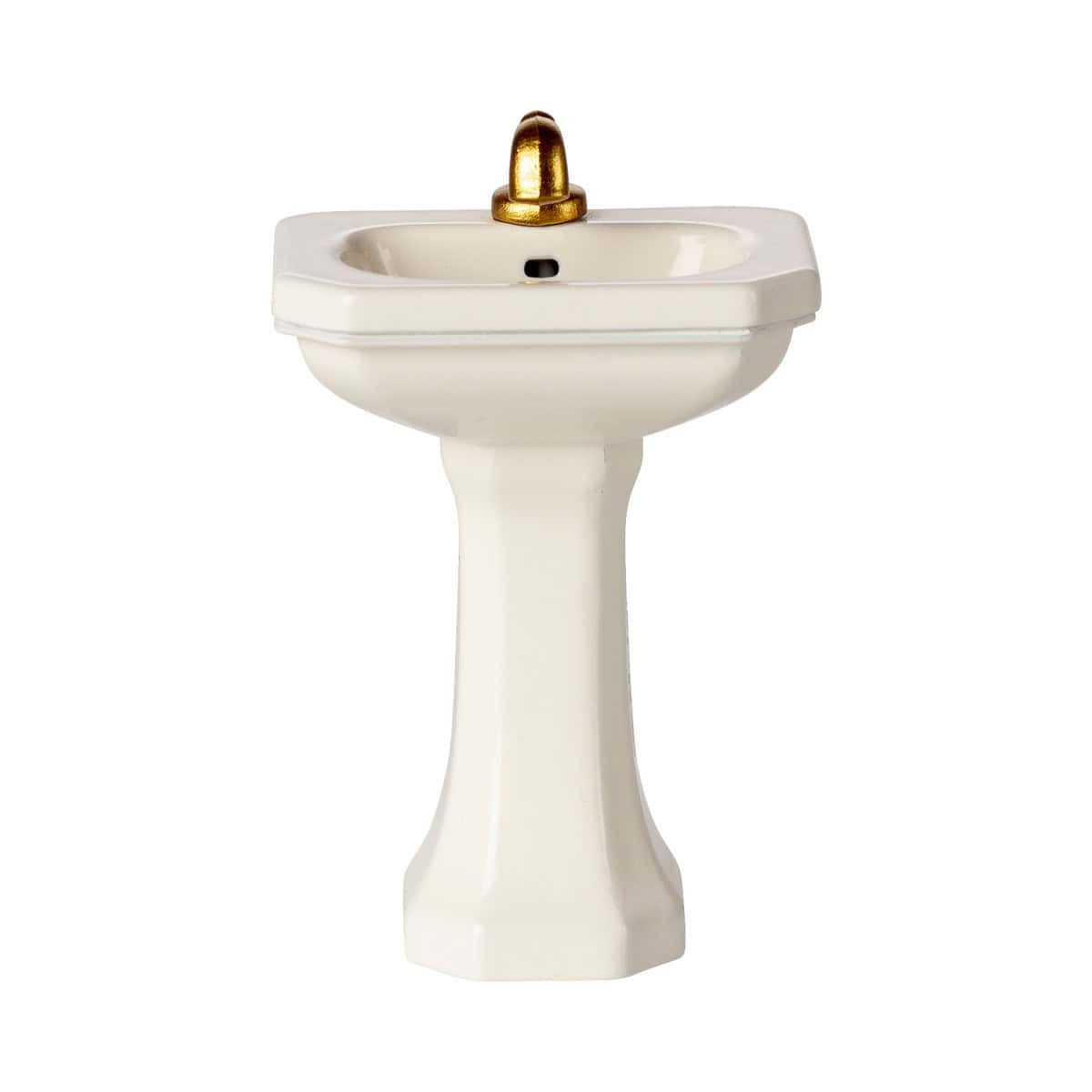 Das Maileg Waschbecken in Offwhite passt ideal zu den Mäusen Kleine Schwester/Bruder und ergänzt die Badszene im Mäusehaus. Aus Metall gefertigt, ca. 7,5 cm hoch × 4,5 cm breit × 3,5 cm tief, pflegeleicht per Oberflächenreinigung. Fördert Fantasie, Sprache & Alltags-Rollenspiel – geeignet für Kinder ab 3 Jahren.