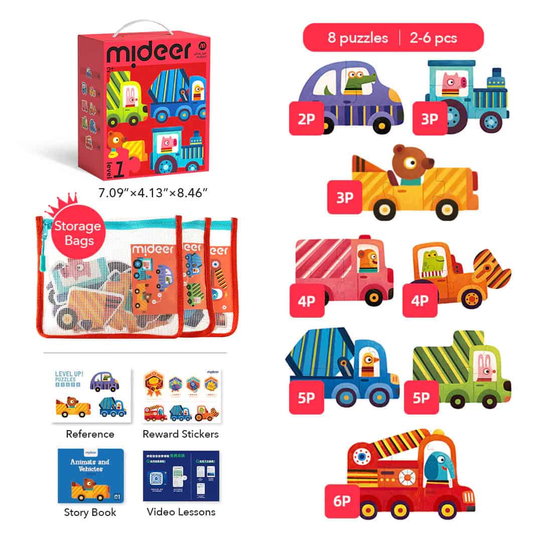 Mideer Level Up! Puzzles Level 1- Tiere & Fahrzeuge 2/6 Teile