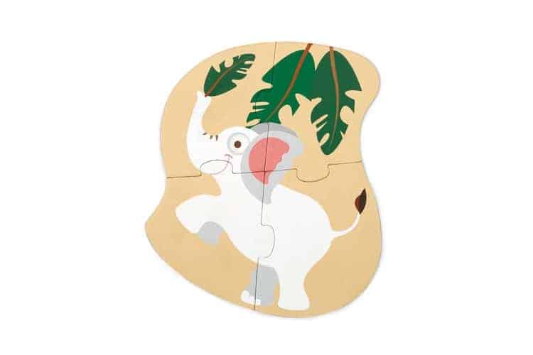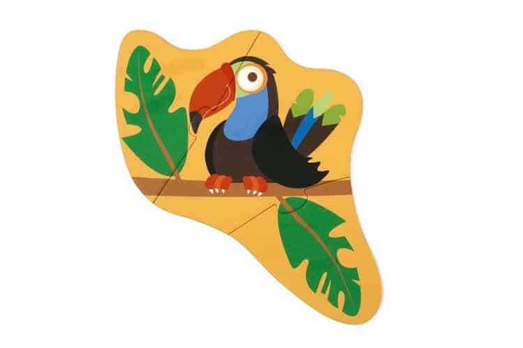 Viel Puzzlespaß mit diesen kleinen Anfängerpuzzles zum Thema Dschungel. Fünf Puzzles, wundervoll illustriert für die Allerkleinsten. Fünf fröhliche Bauernhoffiguren zum Zusammenstecken: Puzzle mit Papagei (drei Puzzleteile), Puzzle Elefant (vier Puzzleteile), Puzzle Papagei (fünf Puzzleteile), Puzzle Affe (sechs Puzzleteile) und Puzzle Tiger (acht Puzzleteile).