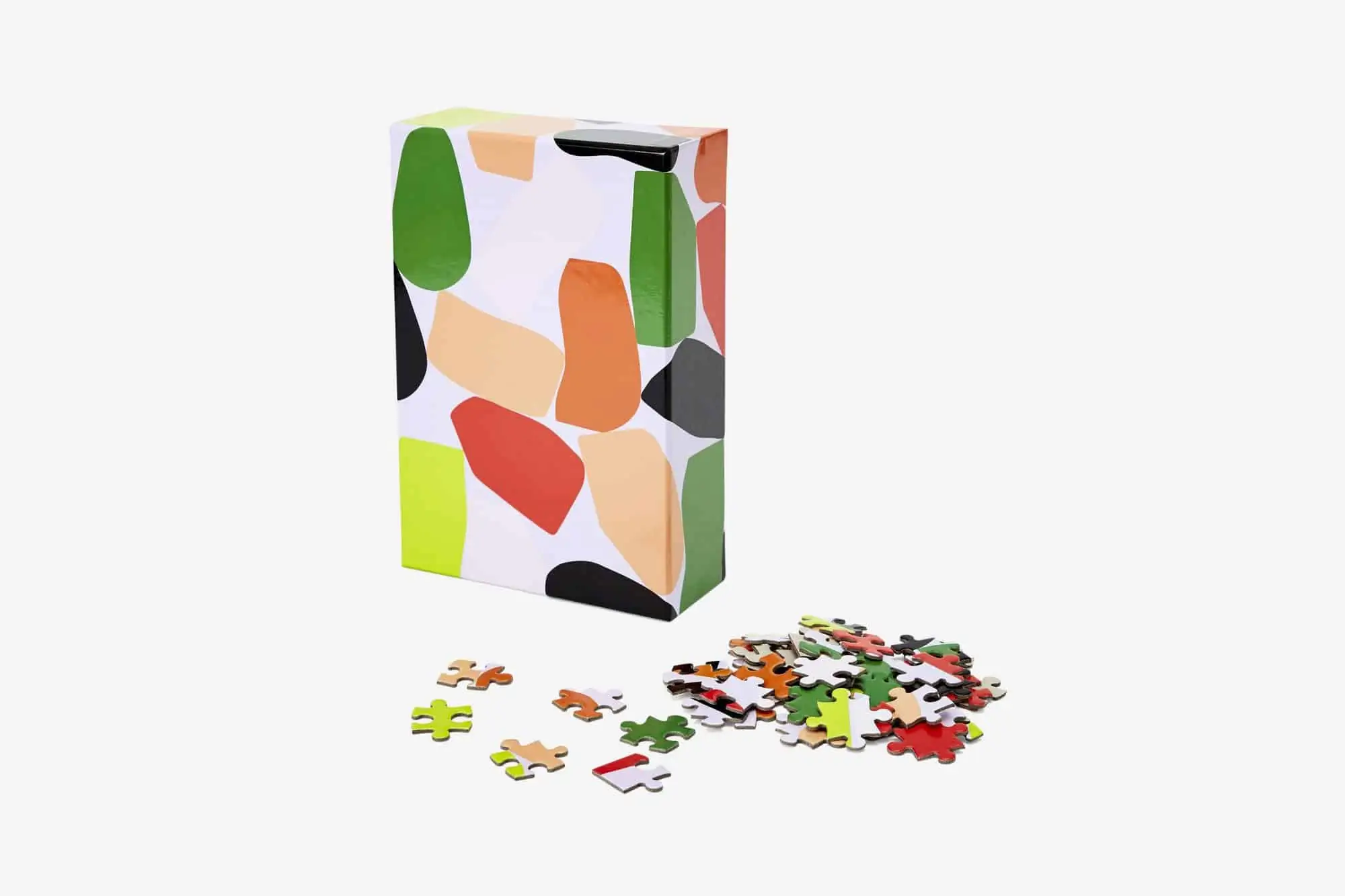 Ein grafisches Bogen-Muster mit dem Design von Dusen Dusen. Diese Firma mit Sitz in Brooklyn, NY, ist bekannt für ihre wagemutigen, bunten Textilien, welche sie bei Kleidung und Accessoires einsetzt. Dusen Dusens Designs spielen mit der Reaktion des Gehirns auf Farben, Bewegung und Kontrast und stimulieren so die Sinne. Das 500-teilige Puzzle wird in einer Verpackung mit Mustern und Formen geliefert, die sich gut auf dem Kaffeetisch oder im Regal macht.