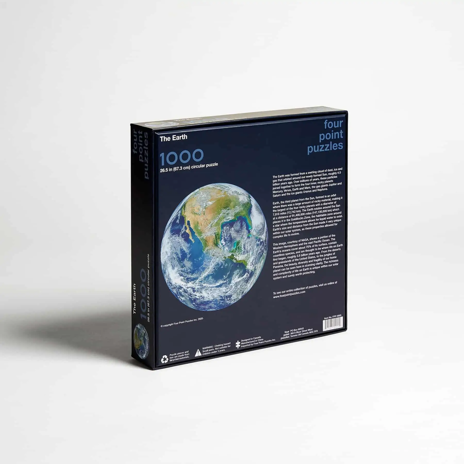 Four Point Puzzles – Die Erde ist ein 1000-teiliges, kreisförmiges Puzzle, das ein Motiv der Erde in unglaublichem Detail zeigt. Das Bild, das von der NASA stammt, ist eines der deutlichsten Bilder der Erdoberfläche, das bisher aufgenommen werden konnte. Es entstand im Zuge der „Blue Marble“ Series und zeigt unseren Planeten in erstaunlicher Bildqualität. Obwohl das Puzzle eine Herausforderung darstellt ist gerade die Tatsache, dass keine zwei Teile die gleiche Form haben, für Puzzlefans eine wahre Freude.