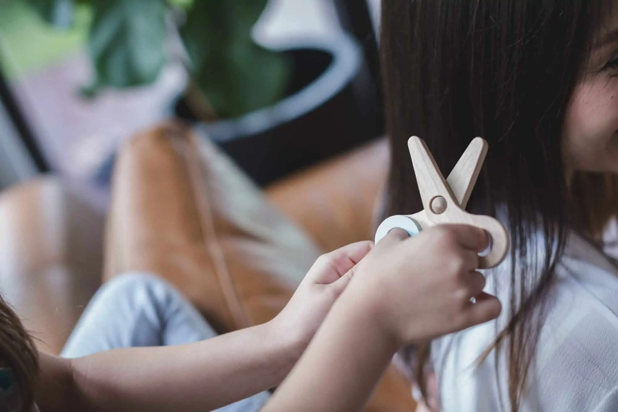 Frisiere dich und deine Freunde mit diesem 6-teiligen Rollenspiel-Set aus Holz. In einer schicken Stofftasche findest du Schere, Haartrockner, Glätteisen, Rasierer und Kamm.