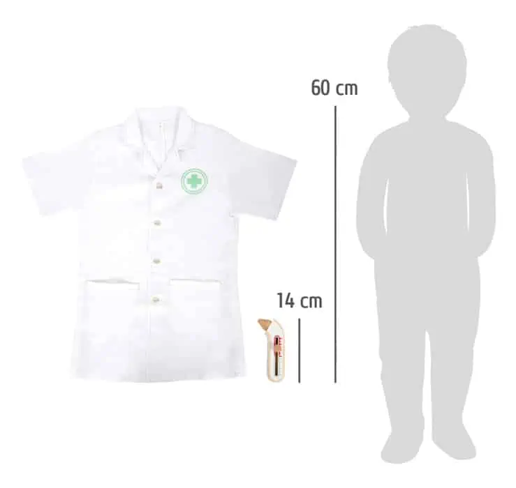- Maße: Arztkittel Kleidergröße 110, Fieberthermometer ca. 14 x 6 x 3,5 cm
