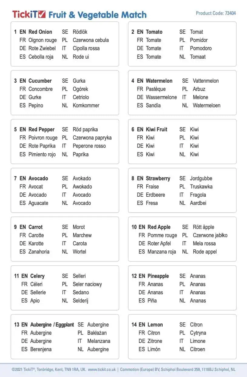 Tickit Fruit & Vegetable Match