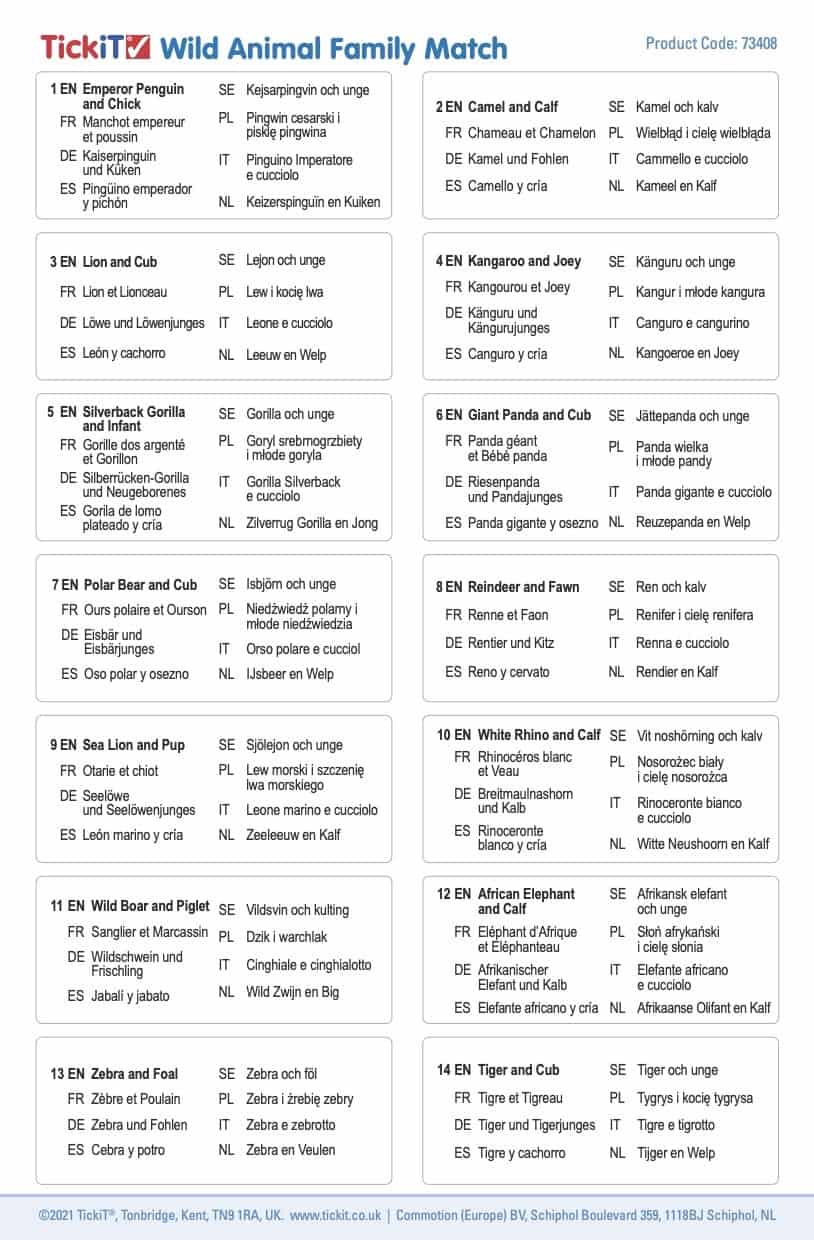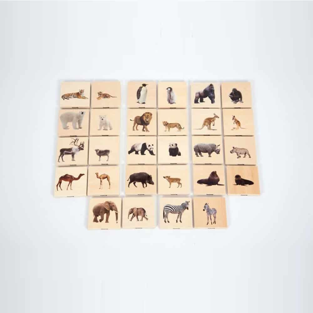 14 Plättchenpaare aus Lindenholz zum Sortieren und Spielen. Bedruckt mit Fotos von echten (Jung)Tieren.