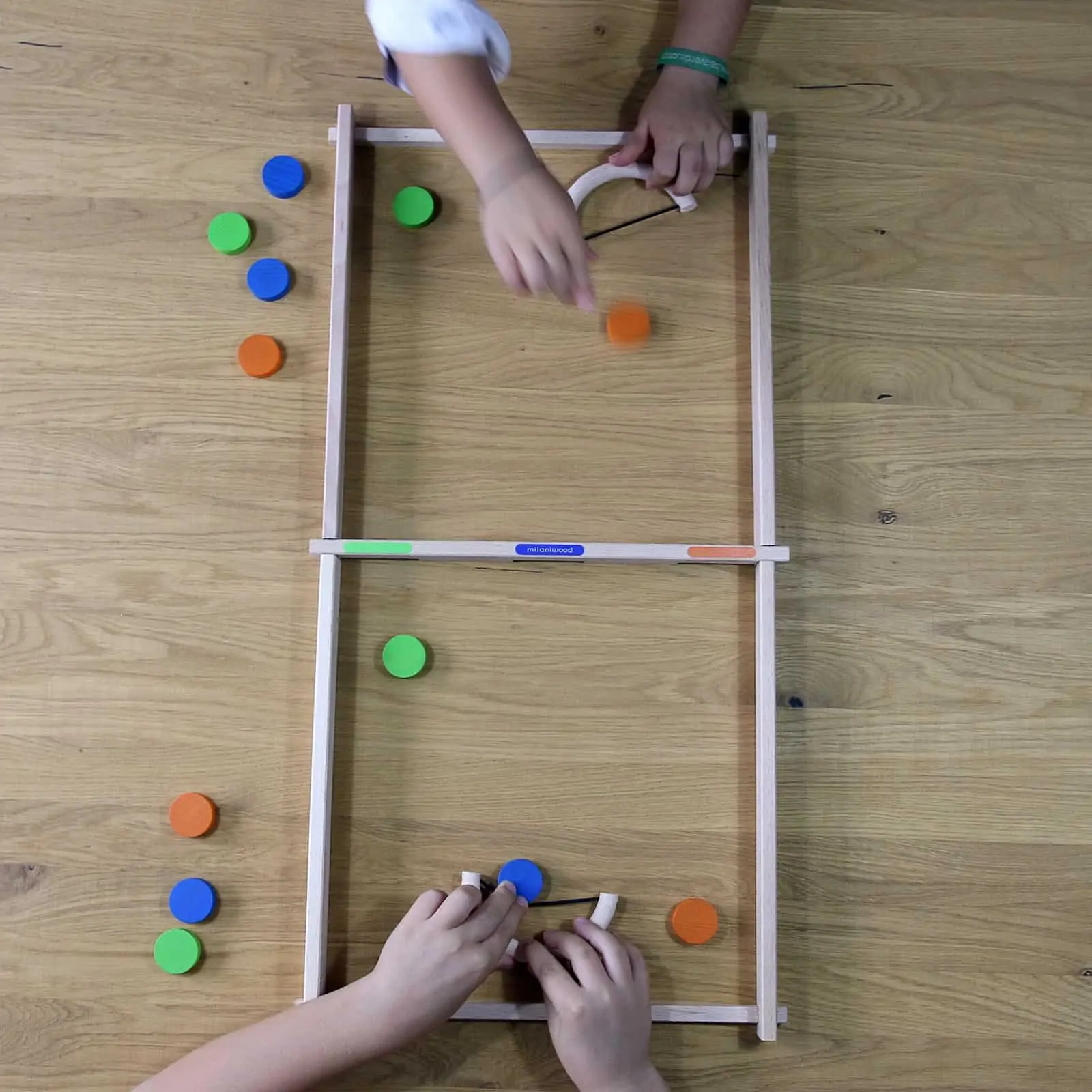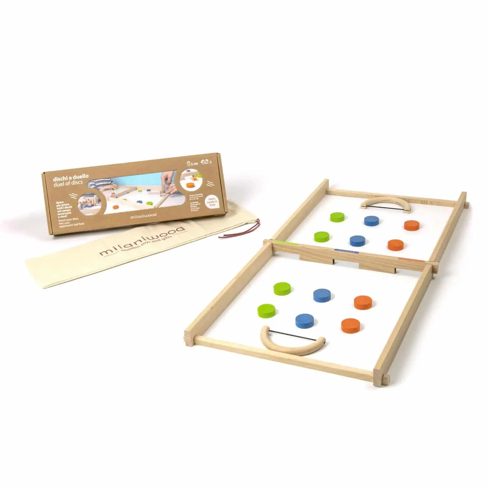 Milaniwood Scheiben Duell ist ein schnelles Spiel, bei dem es auf Geschicklichkeit, Konzentration und Ausdauer ankommt.
