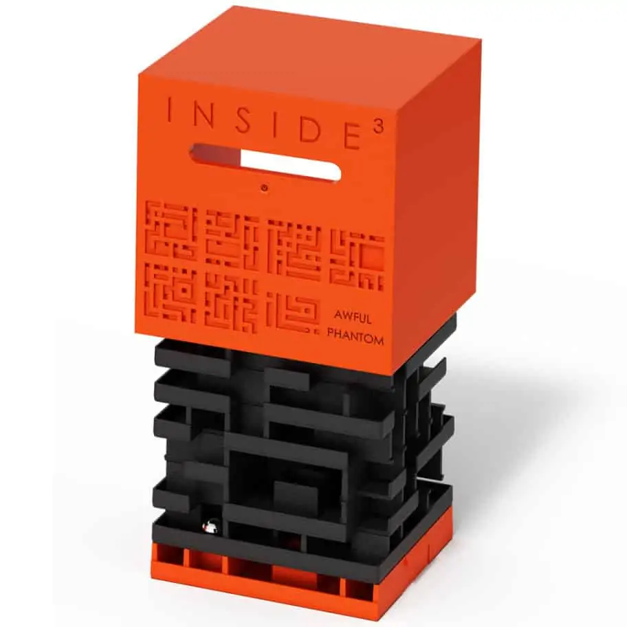 Inside³ Awful ist der mittlere Würfel der „Phantom“-Reihe und damit furchtbar schwierig. Denn der Name der Reihe leitet sich von der Phantom-Kugel ab, einer zusätzlichen Kugel, die im Labyrinth eingeschlossen ist, nur, um dir die Schweißperlen auf die Stirn zu treiben. Du denkst, du schaffst es trotzdem? Bring Zeit mit, das wird etwas dauern!
