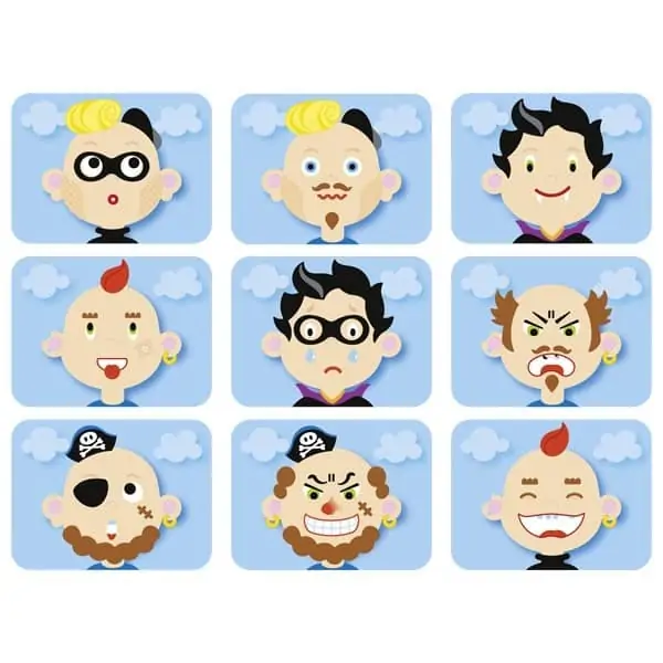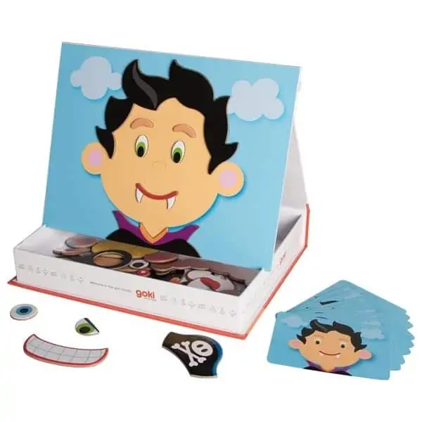 Bei diesem Spiel können Kinder ab 3 Jahren mithilfe des Spielbretts und den magnetischen Teilen viele verschiedene lustige Gesichter erstellen. Für den Fall, dass die Fantasie an ihre Grenzen stoßen sollte, sind auch Vorlagekarten enthalten, die man einfach nachbauen kann.