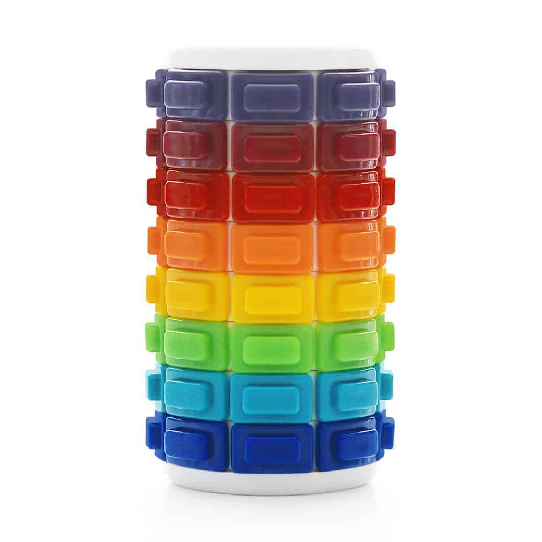 Das zylindrische Spielzeug ist voll von bunten Plättchen, aber ein Platz ist frei. Dadurch können die Plättchen hin und her geschoben und Muster erzeugt werden. Was die Lösung des Puzzles ist, entscheidet nur der Spieler. Ob alle Farben sortiert oder bestimmte Muster geformt werden sollen, die Regeln kann man selbst bestimmen. So ist grenzenloser Spielspaß garantiert.