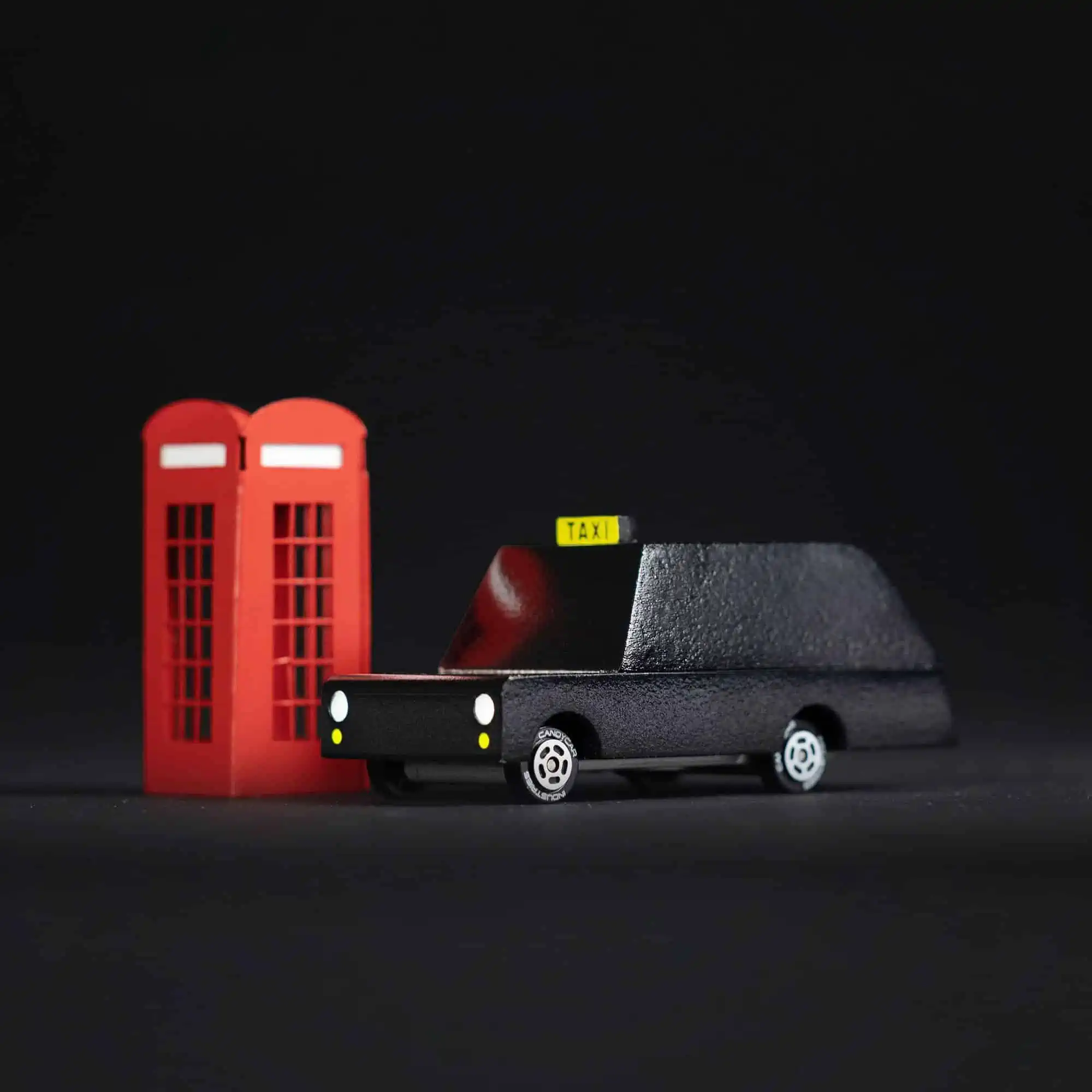 Holzauto im Stile eines englischen Taxis. Inklusive Reifen aus echtem Gummi, ABS Plastikfelgen und Metallachsen, die schnelles und geschmeidiges Rollen erlauben. Das alles mit der hohen Qualität und der kunstvollen Verarbeitung, die man von Candylab gewohnt ist.