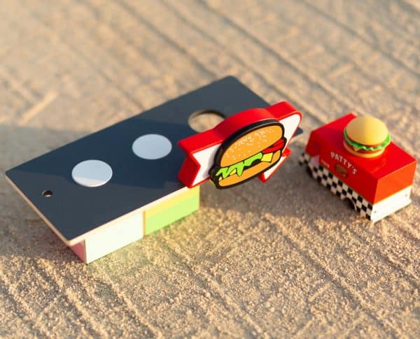 Baue mit dem modularen Set ein Drive-In-Burger-Restaurant für deine Candylab Holzautos.