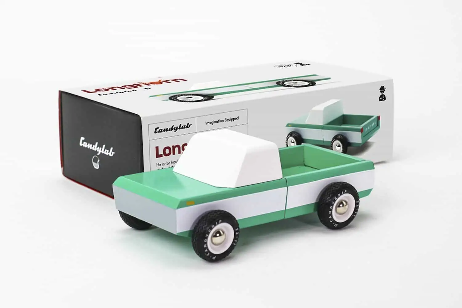 Candylab steht für minimalistische Holzfahrzeuge mit starkem Design-Charakter: klare Linien, markante Farben und Modelle, die an klassische Americana erinnern – vom kompakten Candycar bis zu Racing- und Offroad-Ikonen. Das Ergebnis sind robuste Spielzeuge und zeitlose Deko-Objekte, die Kinder wie Erwachsene begeistern.