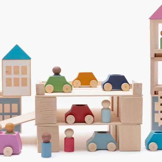 - Holzspielzeugautos und Bus: Die liebevoll gestalteten Holzautos und Busse sind perfekt auf die Stadtlandschaften abgestimmt und ergänzen jedes Spielset ideal.