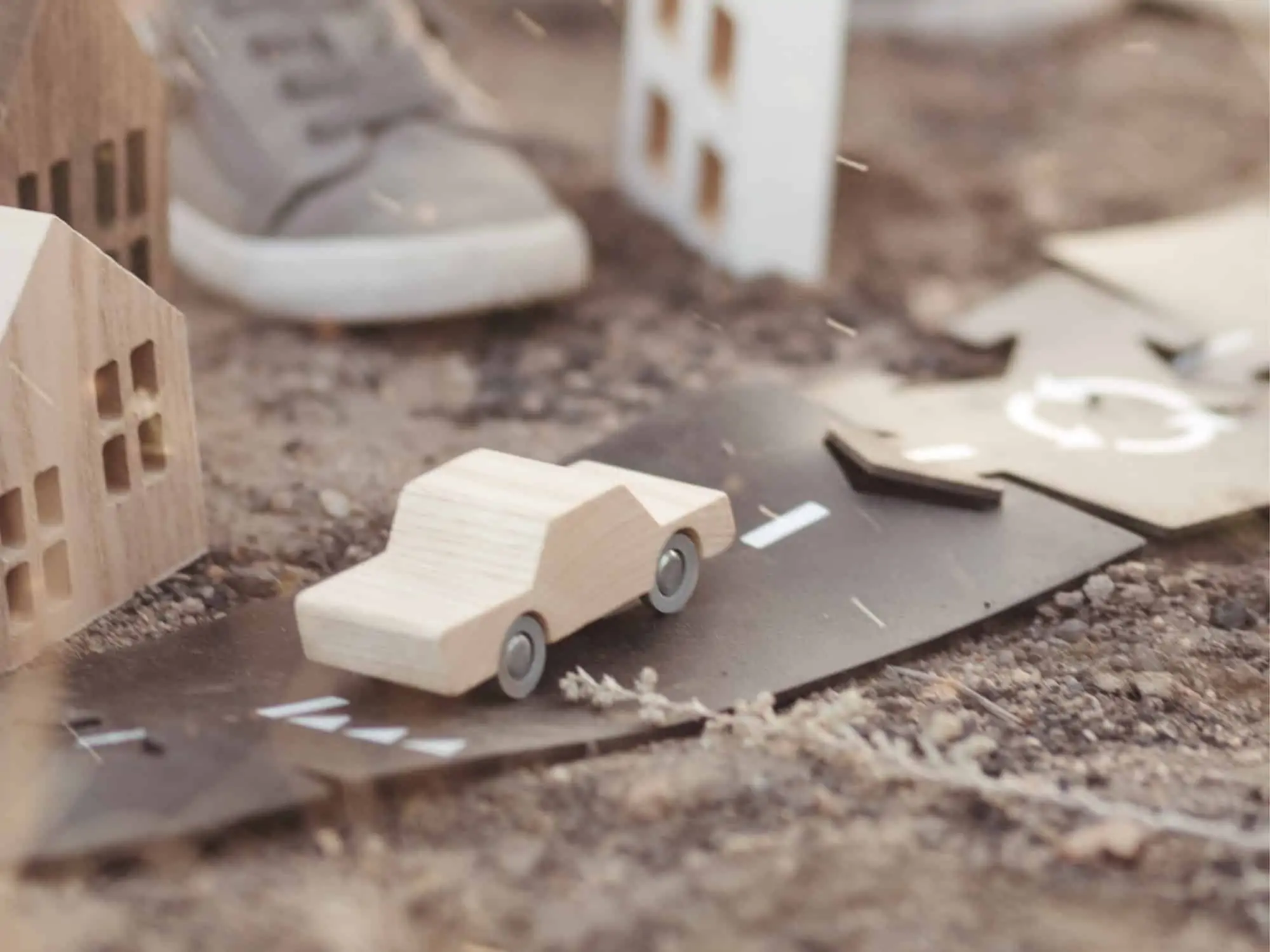 Kleines zuverlässiges Spielzeugauto aus Holz. Perfekt geeignet zur Verwendung mit den Waytoplay Straßenbaukästen.