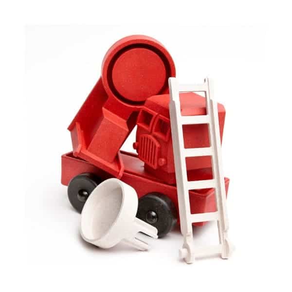Feuerwehrauto, das als simples 3D-Puzzle zusammengesetzt wird. Ohne Lackierung und Kleber. Kompatibel mit allen anderen Luke’s Toy Factory Trucks.