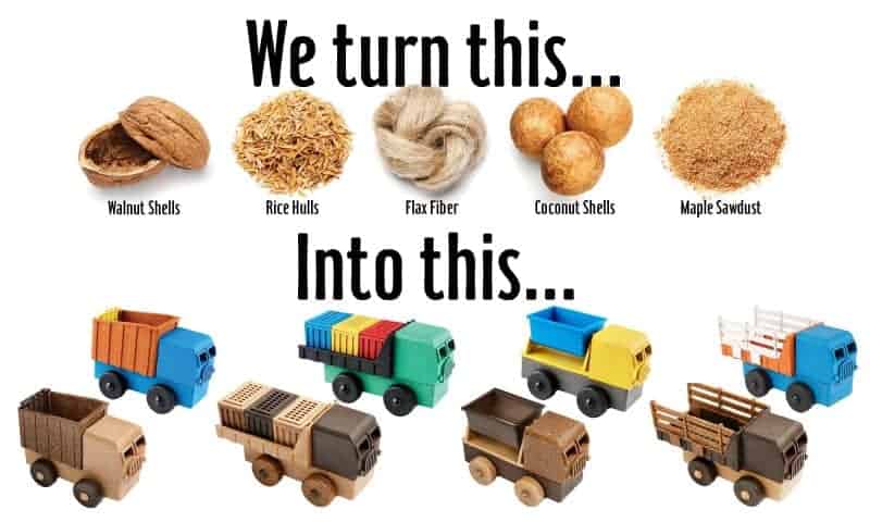 Großen Wert legt Luke auch auf Nachhaltigkeit. So hat er dem Produktionsprozess einfach mal 30% des Plastiks entzogen und es durch natürliche Ressourcen ersetzt. Dafür benutzt er Abfallstoffe wie Sägemehl, Nussschalen, Reishüllen, etc. Außerdem sind die Farben eingepresst und nicht lackiert, sodass sie niemals abblättern können. Alles in allem sind die Fahrzeuge, die Luke’s Toy Factory verlassen, durch und durch amerikanisch, nachhaltig und unterhaltsam. Sieh dir die Trucks aus Holz und Plastik in unserem Shop an und überzeuge dich selbst von Lukes innovativem Holz-Plastik-Komposit.