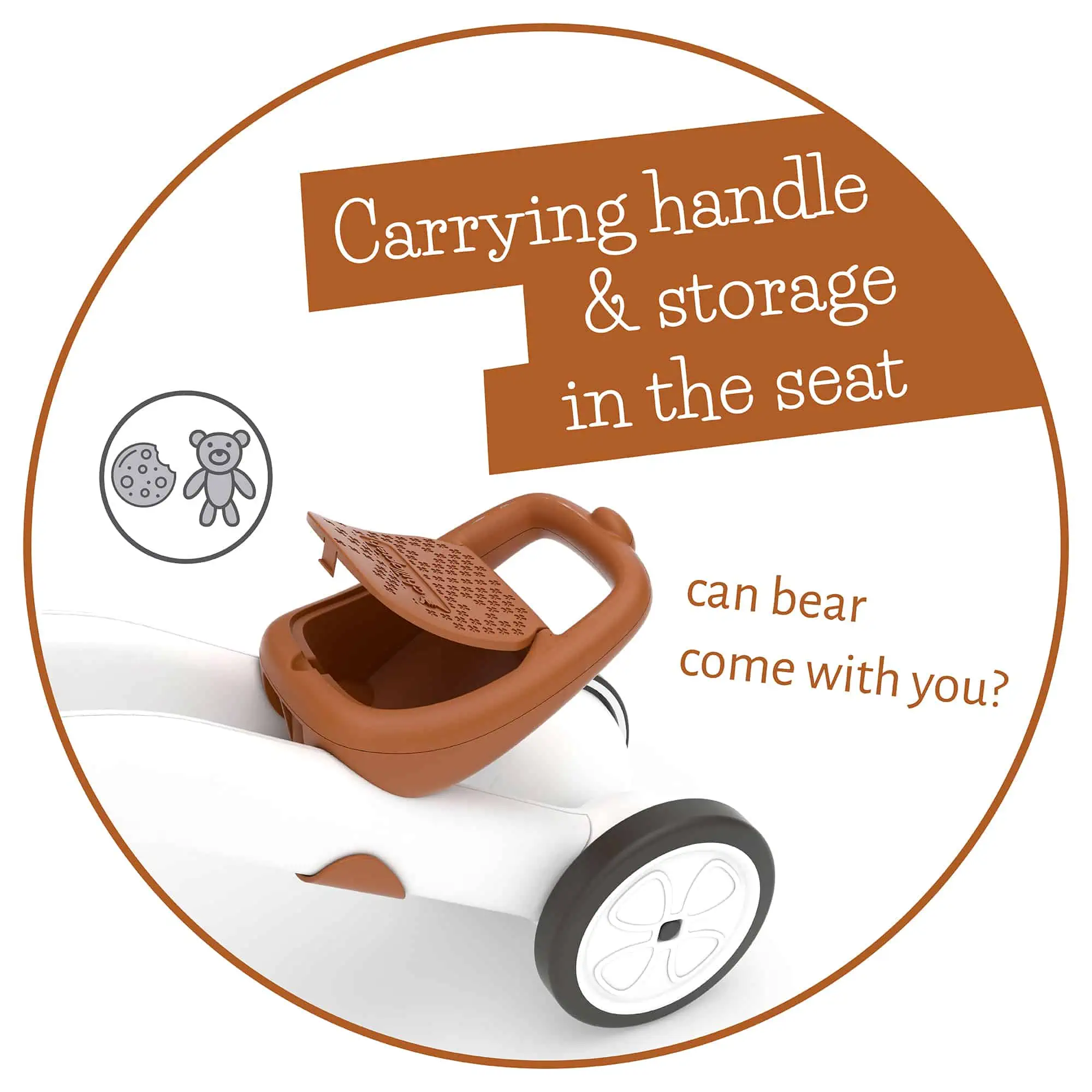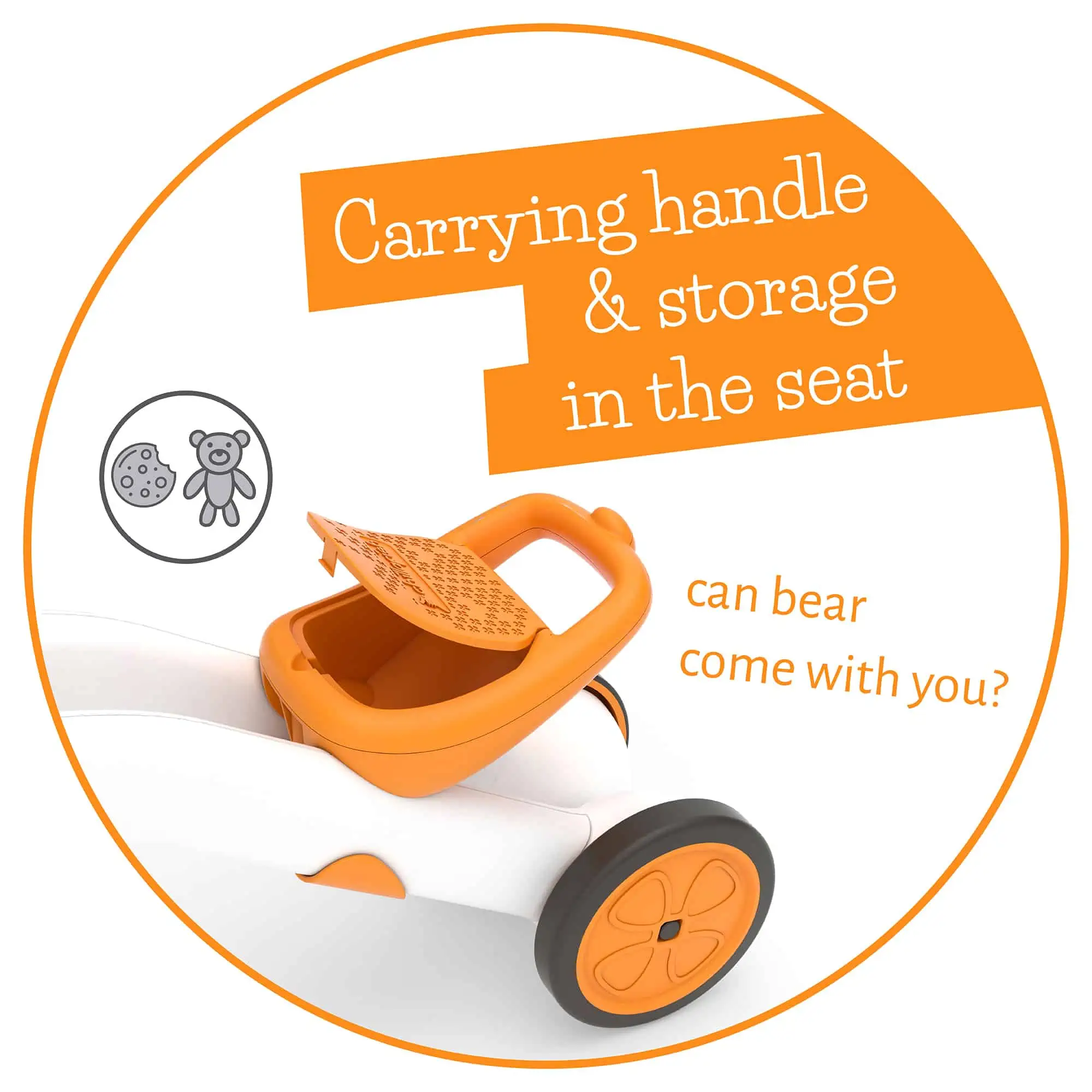 Mach deine ersten Laufrad-Schritte auf dem Dreirad. Wenn du dann einmal weit genug bist und die Balance halten kannst, wechselst du einfach zum Zweirad. Den ergonomisch geformten Sitz kannst du aufklappen und allerlei Utensilien darin verstauen.