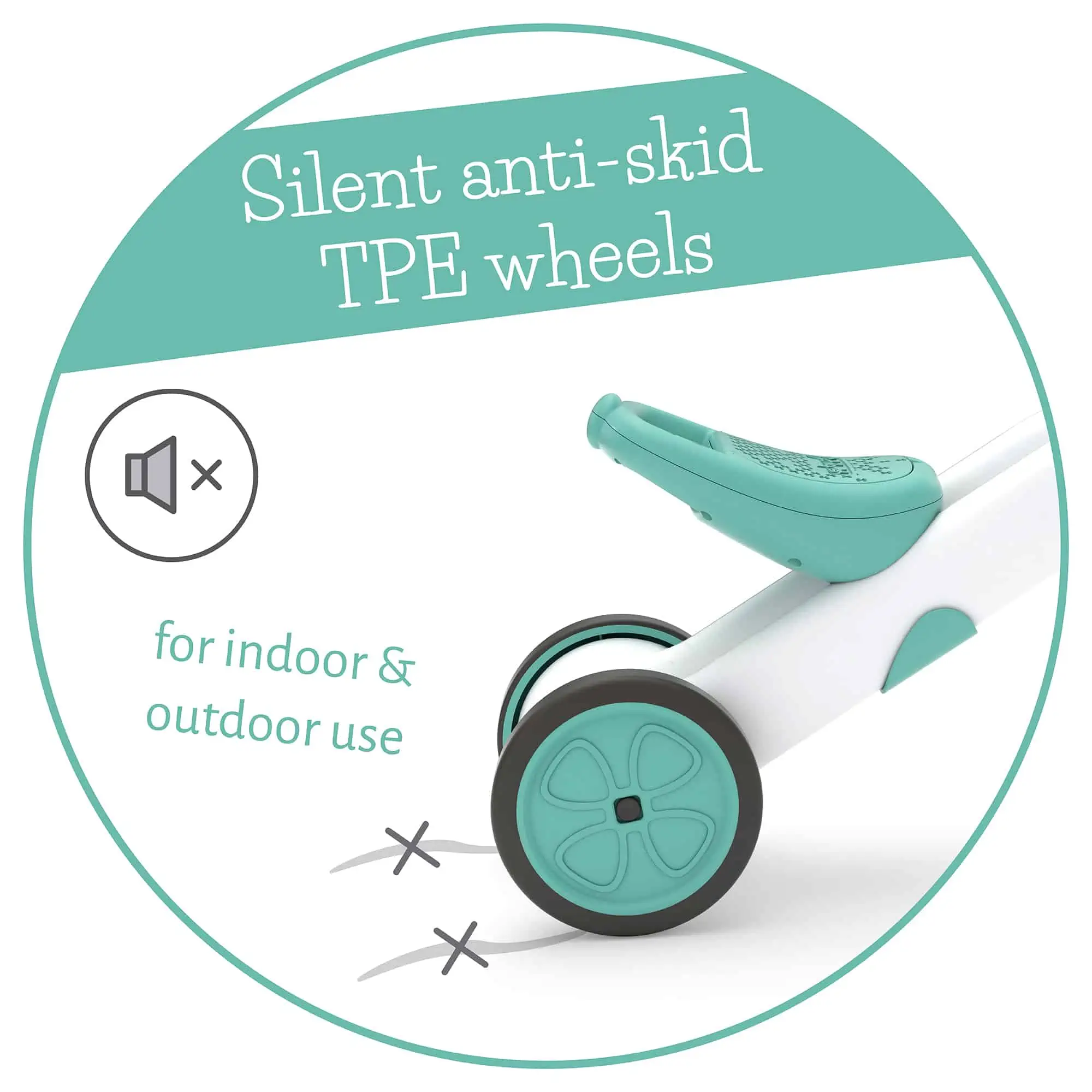 Dank der TPE-Reifen kannst du dein Fahrzeug sowohl drinnen als auch draußen benutzen. Außerdem sind die Reifen sehr leise. Sie rutschen nicht und sie quietschen nicht. Bunzi ist in vier verschiedenen Ausführungen erhältlich.