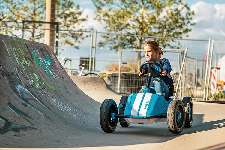 Pedalkart mit verstellbarem Sitz, Handbremse und Haltevorrichtung zum Aufhängen. Für Kinder von 3-7 Jahren zwischen 1 – 1,35 m Größe und max. 35 kg Gewicht.